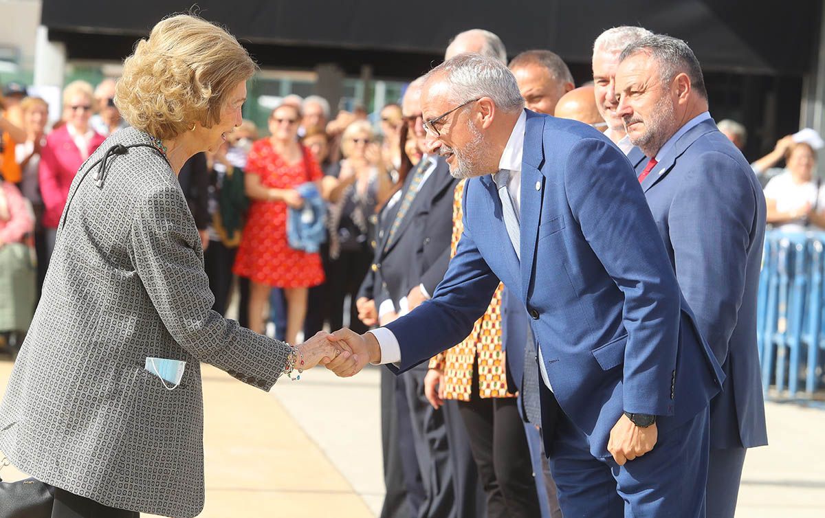 Tras bajar del coche oficial en el que llegó a la capital berciana, la reina Sofía saludó a los representantes de las administraciones públicas que acudieron a recibirla. El alcalde de Ponferrada, Olegario Ramón; el presidente de la Diputación de León, Eduardo Morán; el presidente del Consejo Comarcal del Bierzo, Gerardo Álvarez Courel; y el subdelegado del Gobierno en la provincia, Faustino Sánchez, fueron los encargados de dar la bienvenida a la monarca.