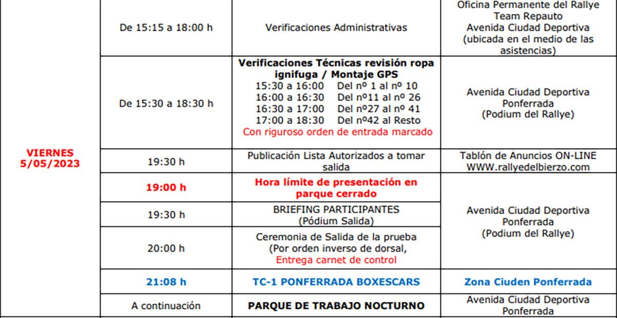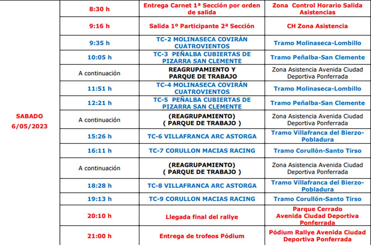 HORARIOS DEL 30 RALLYE DEL BIERZO