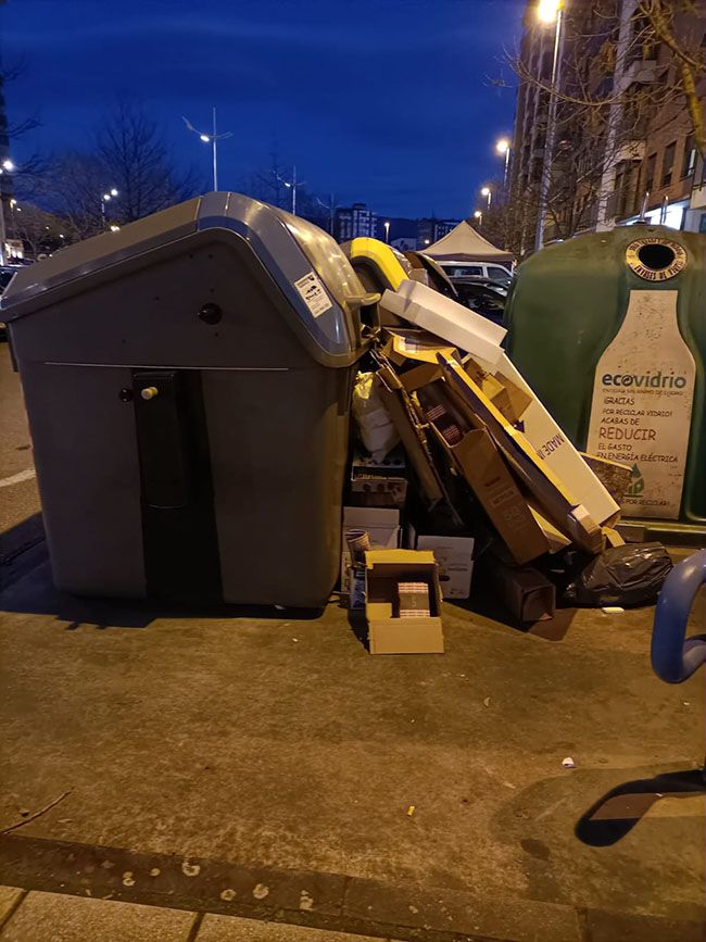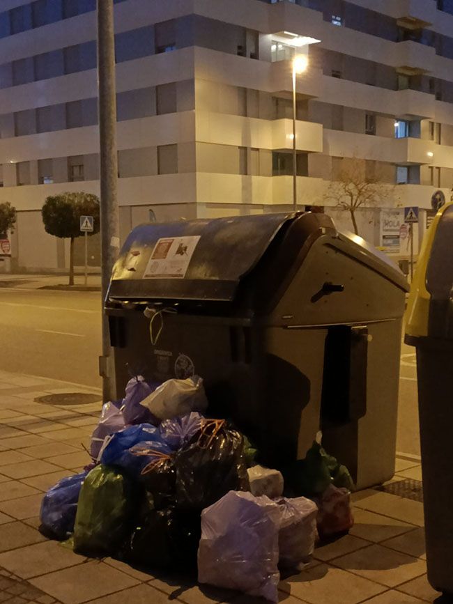 Desde el comité de huelga de FCC en Ponferrada adjuntan estas fotos "mostrando algunos contenedores y calles de Ponferrada y entorno en estado deficiente por el efecto de la huelga."