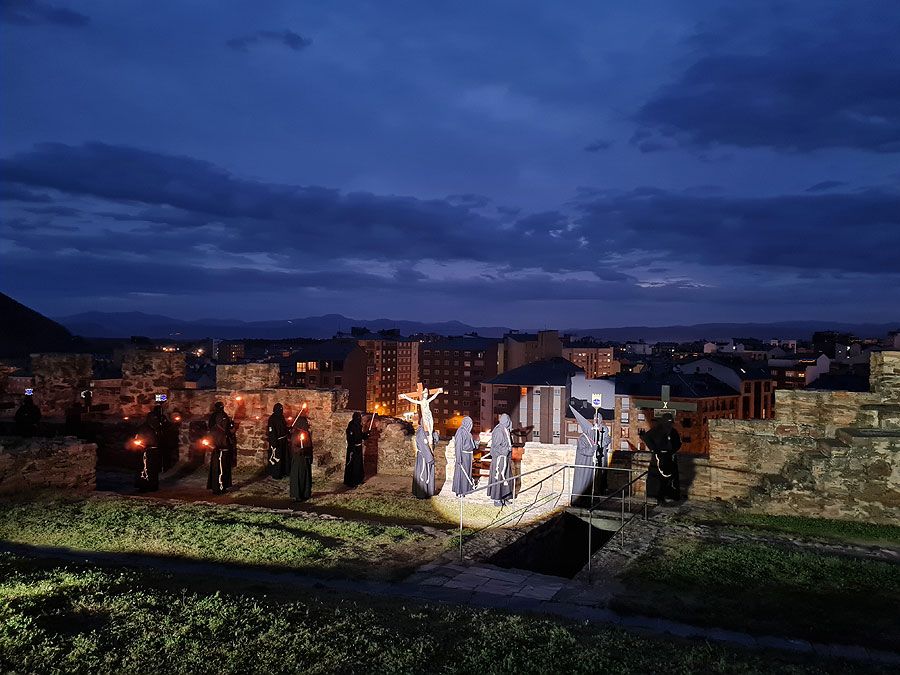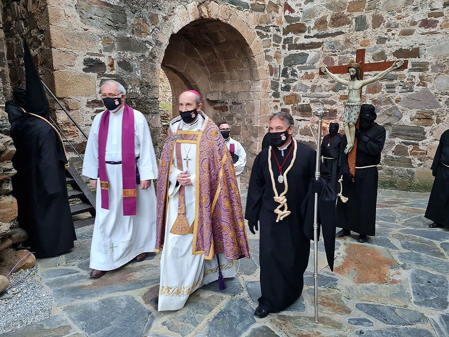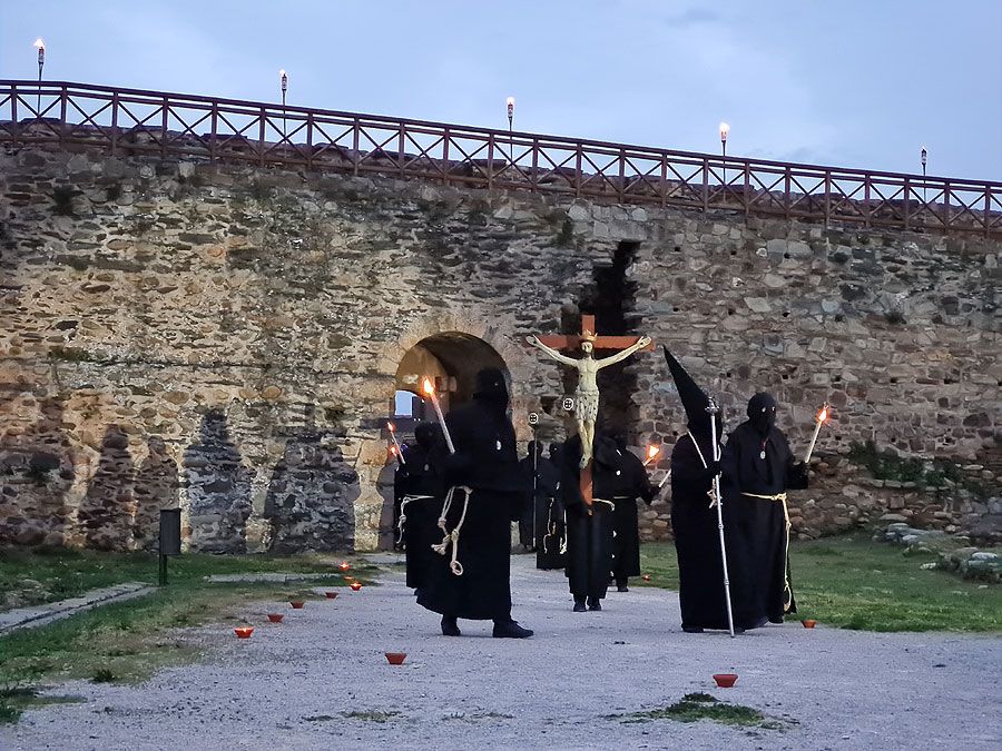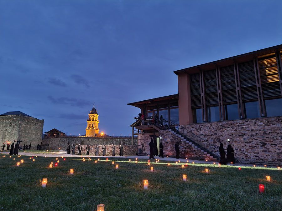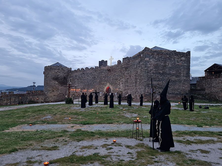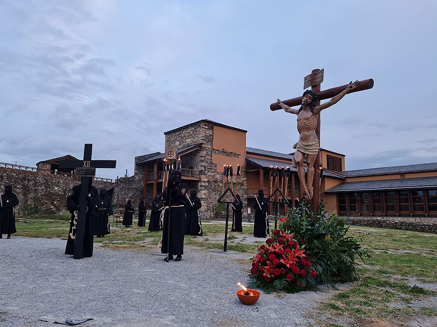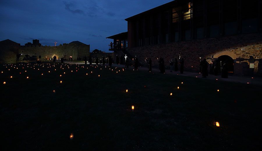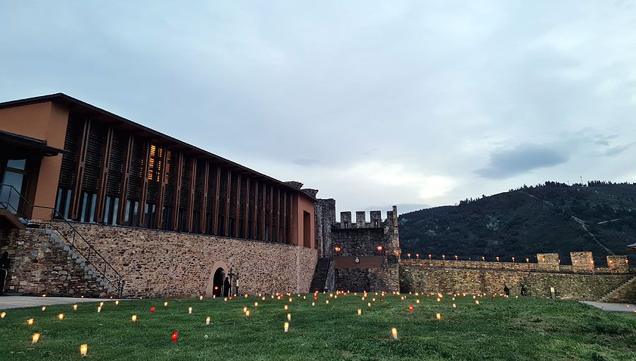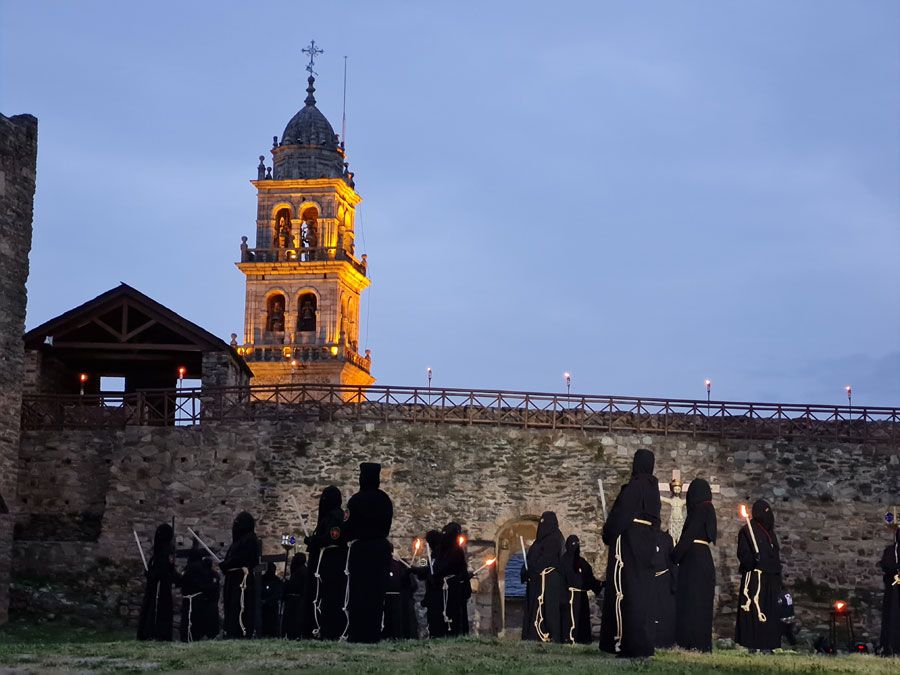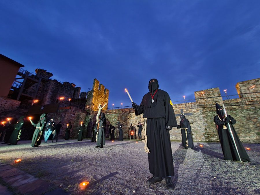 Al igual que ocurriera la pasada edición, esta Semana Santa y todos sus actos se han visto alterados y han tenido que adaptarse a la pandemia para retomarse al menos. El Vía Crucis Penitencial al Castillo marcaba el Lunes Santo con la unión del Cristo de la Esperanza y del Cristo de la Fortaleza en el patio de armas del Castillo de los Templarios. Habitualmente, tras las 14 estaciones de penitencia que marcan cada uno de los momentos de la Pasión de Cristo partiendo de la Iglesia de San Andrés, la procesión culminaba en el interior de la fortaleza, aunque en esta ocasión el acto se ha limitado a una retransmisión en directo desde el interior del castillo.