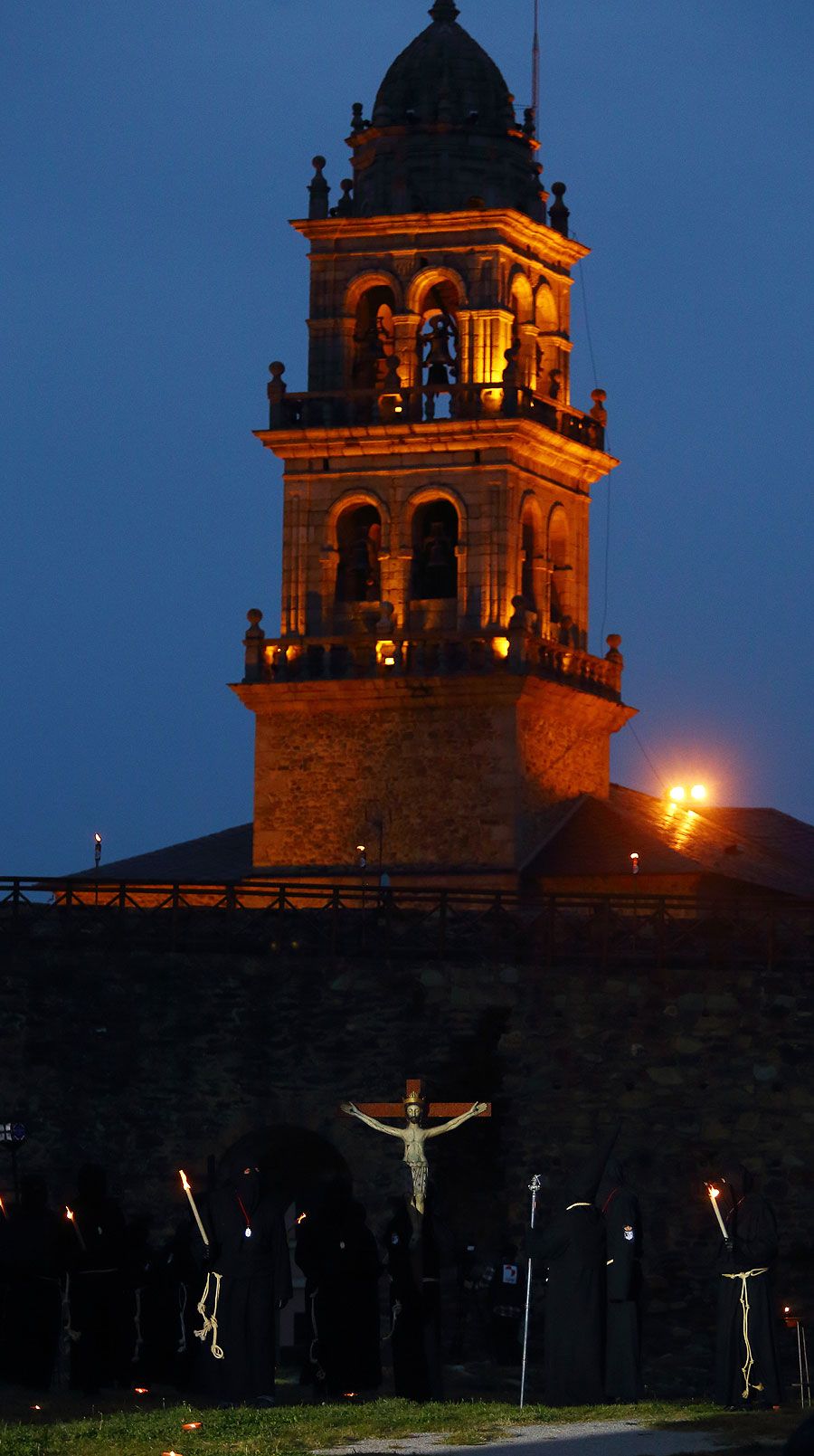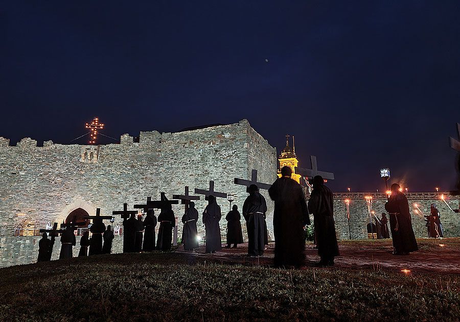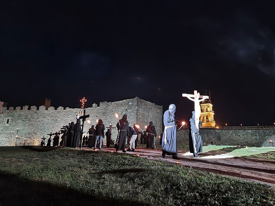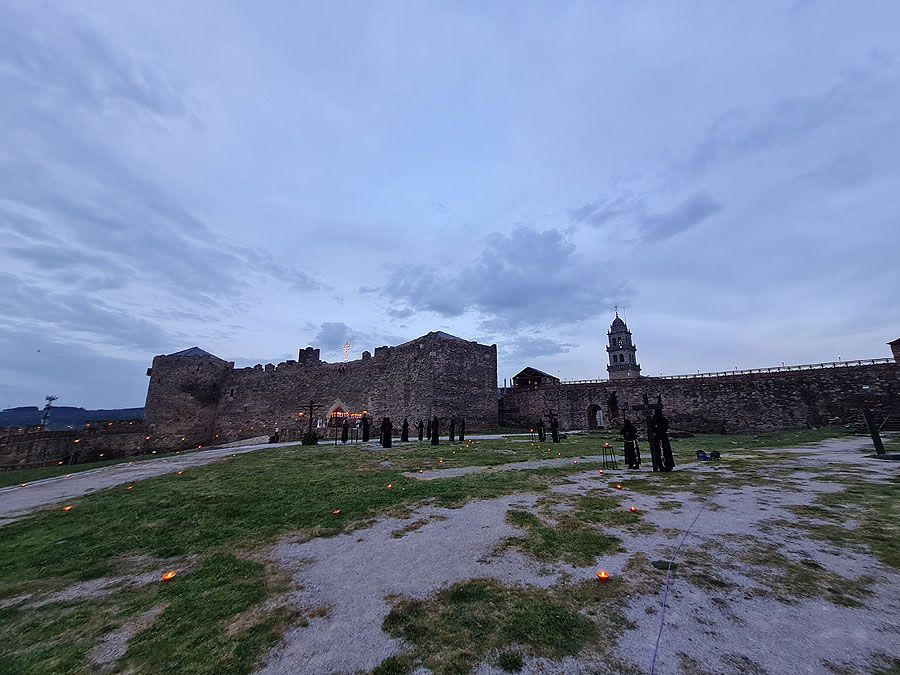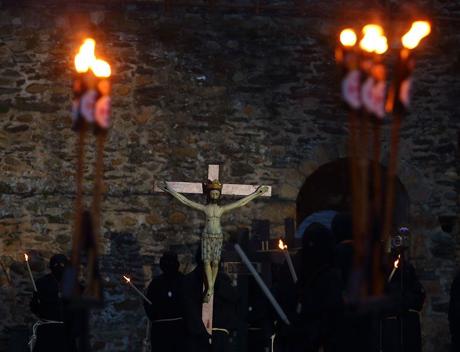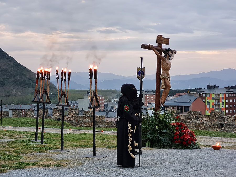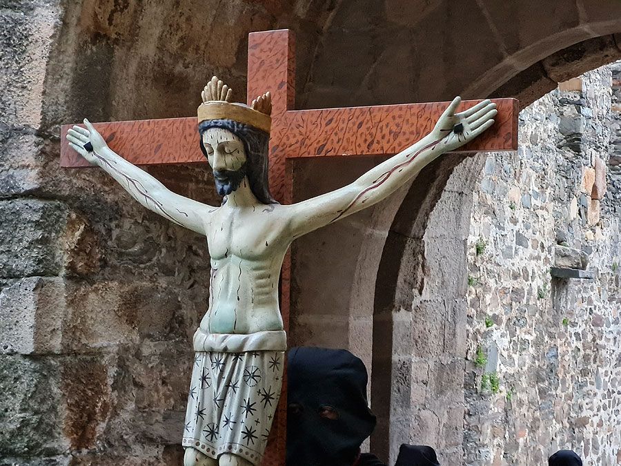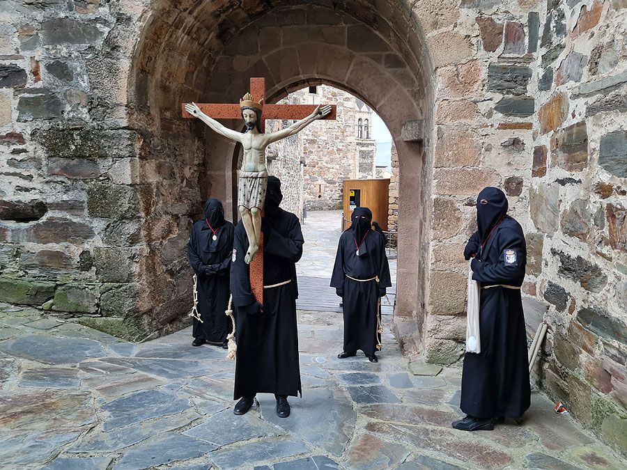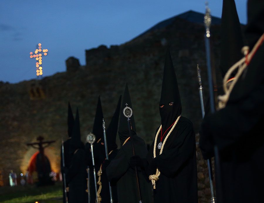 Al igual que ocurriera la pasada edición, esta Semana Santa y todos sus actos se han visto alterados y han tenido que adaptarse a la pandemia para retomarse al menos. El Vía Crucis Penitencial al Castillo marcaba el Lunes Santo con la unión del Cristo de la Esperanza y del Cristo de la Fortaleza en el patio de armas del Castillo de los Templarios. Habitualmente, tras las 14 estaciones de penitencia que marcan cada uno de los momentos de la Pasión de Cristo partiendo de la Iglesia de San Andrés, la procesión culminaba en el interior de la fortaleza, aunque en esta ocasión el acto se ha limitado a una retransmisión en directo desde el interior del castillo.