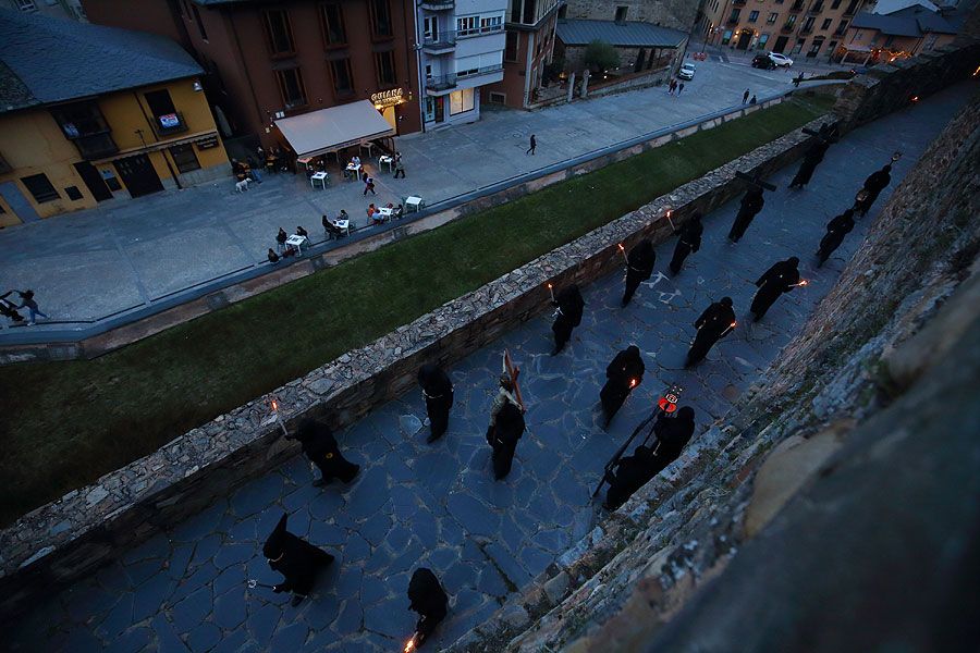 Esta procesión se instauró hace siete años, en 2014, con el objetivo de impulsar la declaración de la Semana Santa de Ponferrada como de Interés Turístico Nacional y que obtuvo al año siguiente. Esta vez a puerta cerrada, y con presencia del Obispo de Astorga, Jesús Fernández.