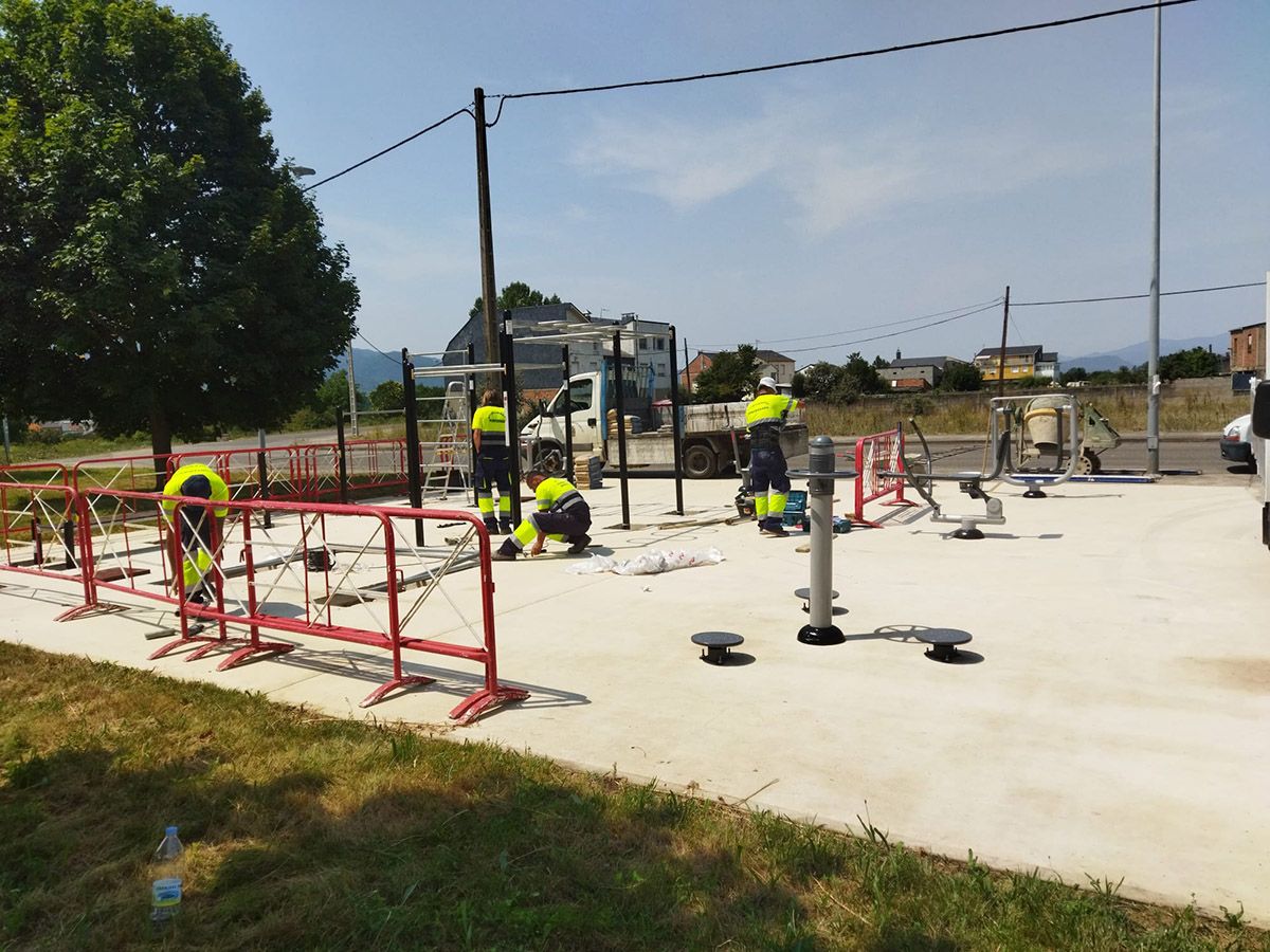En estos momentos los trabajos que se están acometiendo en el parque de La Placa están muy avanzados, con los elementos deportivos y de calistenia ya instalados y está únicamente pendiente la colocación del suelo sintético, que es estrictamente necesario para evitar lesiones graves en posibles caídas de los usuarios durante su ejercicio o prácticas deportivas.
