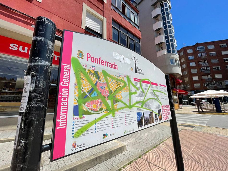 Edificios con fachadas recién acabadas y que a los dos días ya están ocupadas por la ‘marca’ de algún ciudadano, sin razón alguna. Esto es lo más normal en Ponferrada durante los últimos tiempos y cada vez, va a más. Sin embargo, no sólo las fachadas de los edificios son los nuevos lienzos de los incívicos, también contenedores, cabinas de teléfono, puertas de garajes, muros de la vía, paneles informativos de la ciudad, portales...