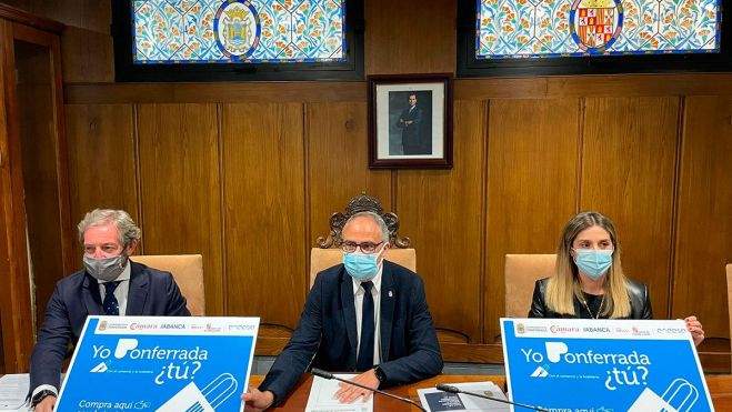 El Ayuntamiento de Ponferrada renueva este 10 de mayo junto con la Cámara de Comercio de León el convenio de la segunda edición de abonos al consumo "Yo Ponferrada ¿Y tú?" con el objetivo de fomentar el pequeño comercio local y la hostelería. Así, se llegará a emitir un total de 4.000 tarjetas que ponen en la calle un circulante en descuentos bonificados a los compradores por valor de 100.000 euros. Durante la firma del segundo convenio de bonos al consumo, estuvieron presentes en la firma el alcalde de Ponferrada, Olegario Ramón, la concejala de Consumo, Lorena Valle y el presidente de la Cámara de Comercio de León, Javier Vega.