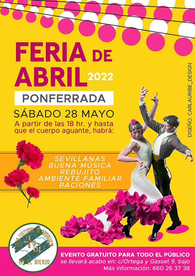 La Casa Cultural de Andalucía en El Bierzo ha organizado para el próximo sábado 28 de mayo su propia Feria de Abril. Las celebraciones comenzarán a partir de las 18 horas en la calle Ortega y Gasset 9, bajo, y se extenderán "hasta que el cuerpo aguante", bromean sus organizadores.