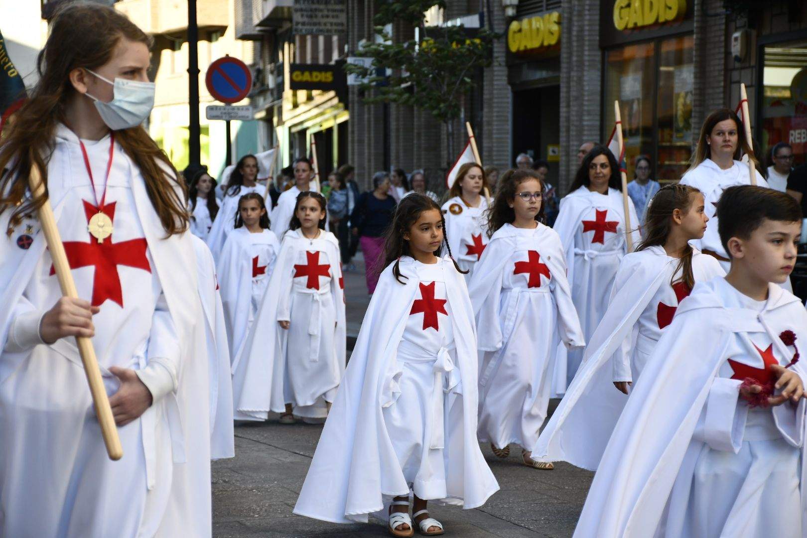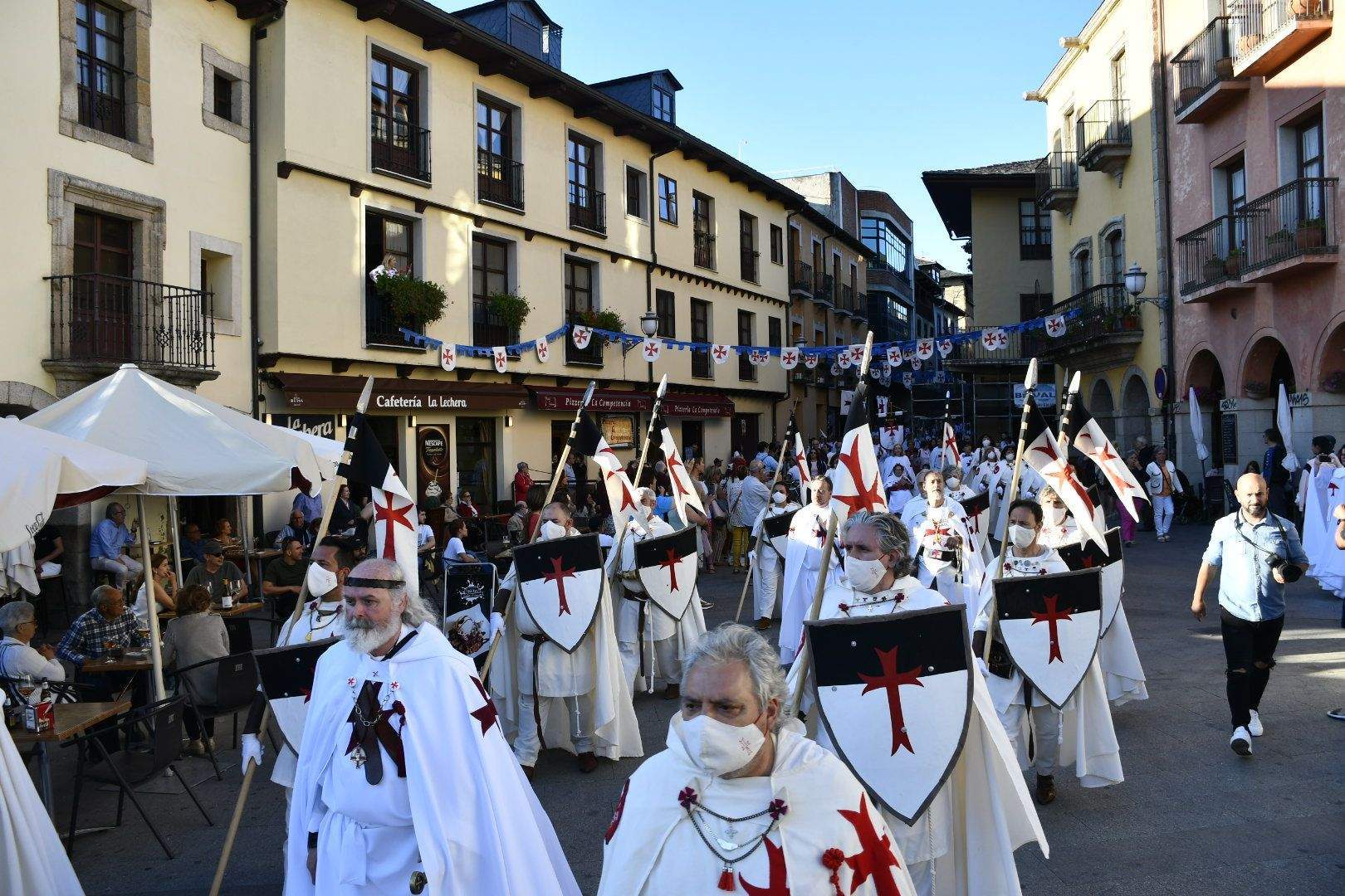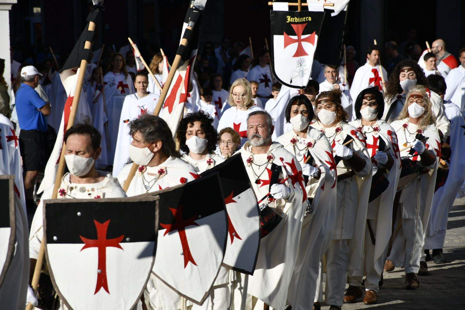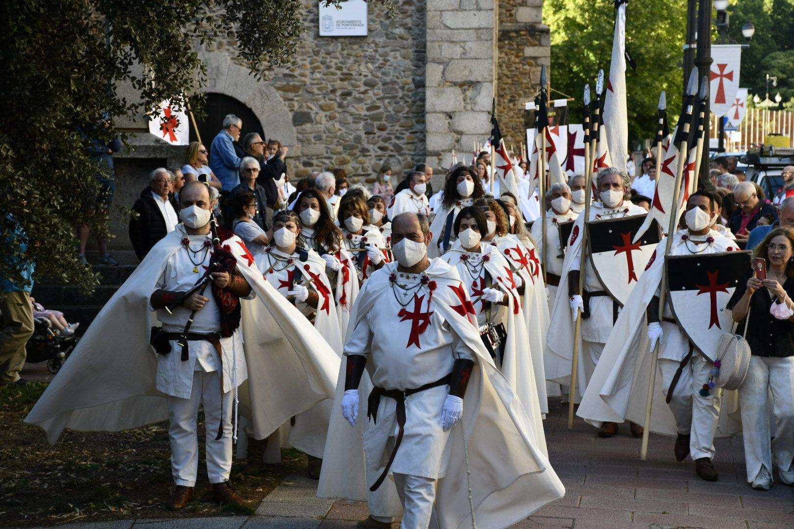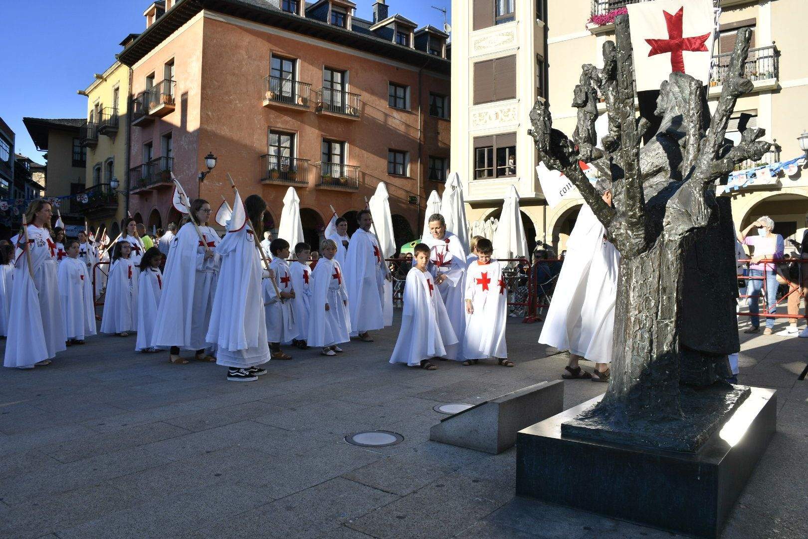 La ciudad de Ponferrada, concretamente la Plaza de la Encina en el corazón del Casco Antiguo, ha reunido a los más pequeños para cumplir uno de los 'ritos' iniciáticos de La Noche Templaria, para convertirse en escuderos de la Orden del Temple. Tras dos años de parón por la crisis sanitaria, la Noche Templaria de Ponferrada ha vuelto y además renovada, con nuevos espacios y actos que permitirán a bercianos y turistas disfrutar de esta cita medieval con la llegada del verano. El mismo maestre Guido de Garda ha acompañado a los escuderos desde el Paseo San Antonio hasta la plaza, donde la imposición de mano y el colgante con la orden del Temple hace que nuevos 'relevos' empiecen a sumarse a este colectivo promotor de una fiesta ya referente en la ciudad.