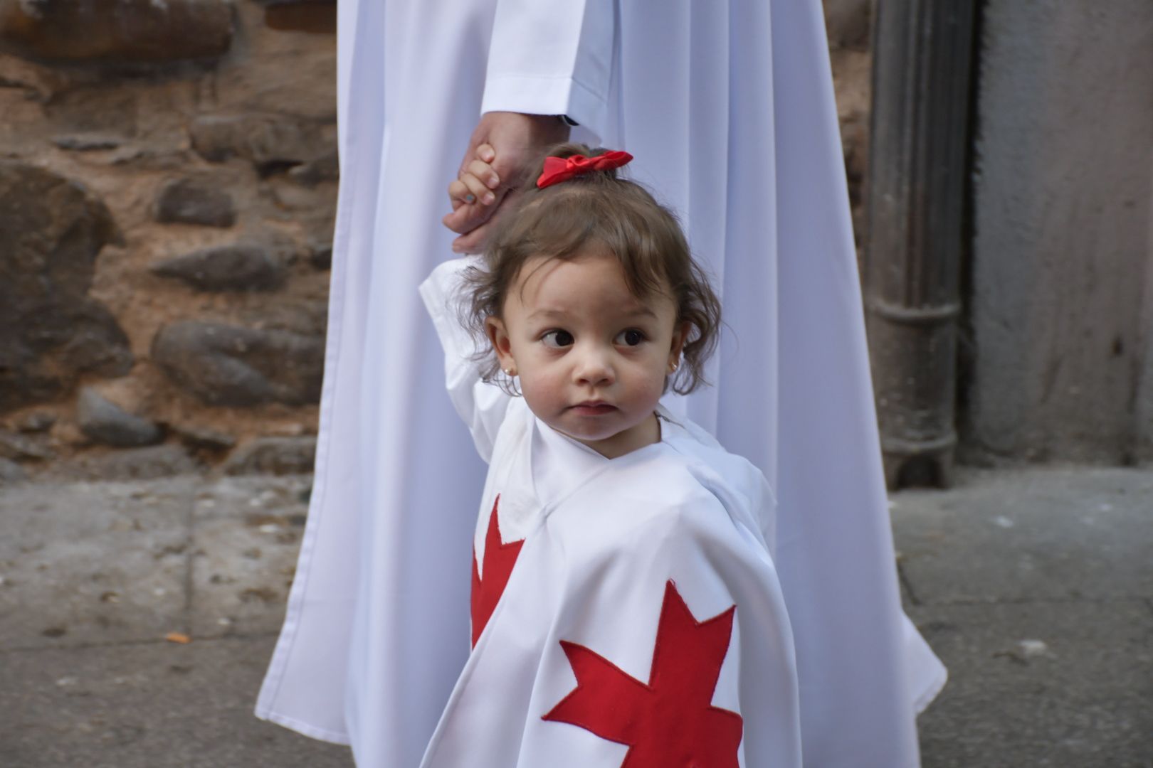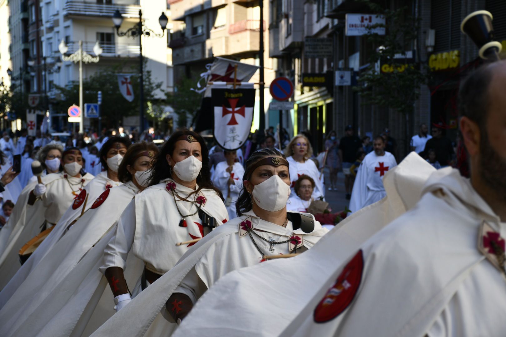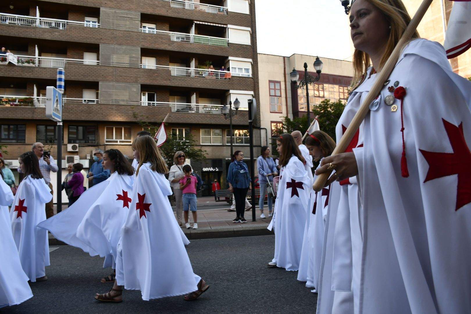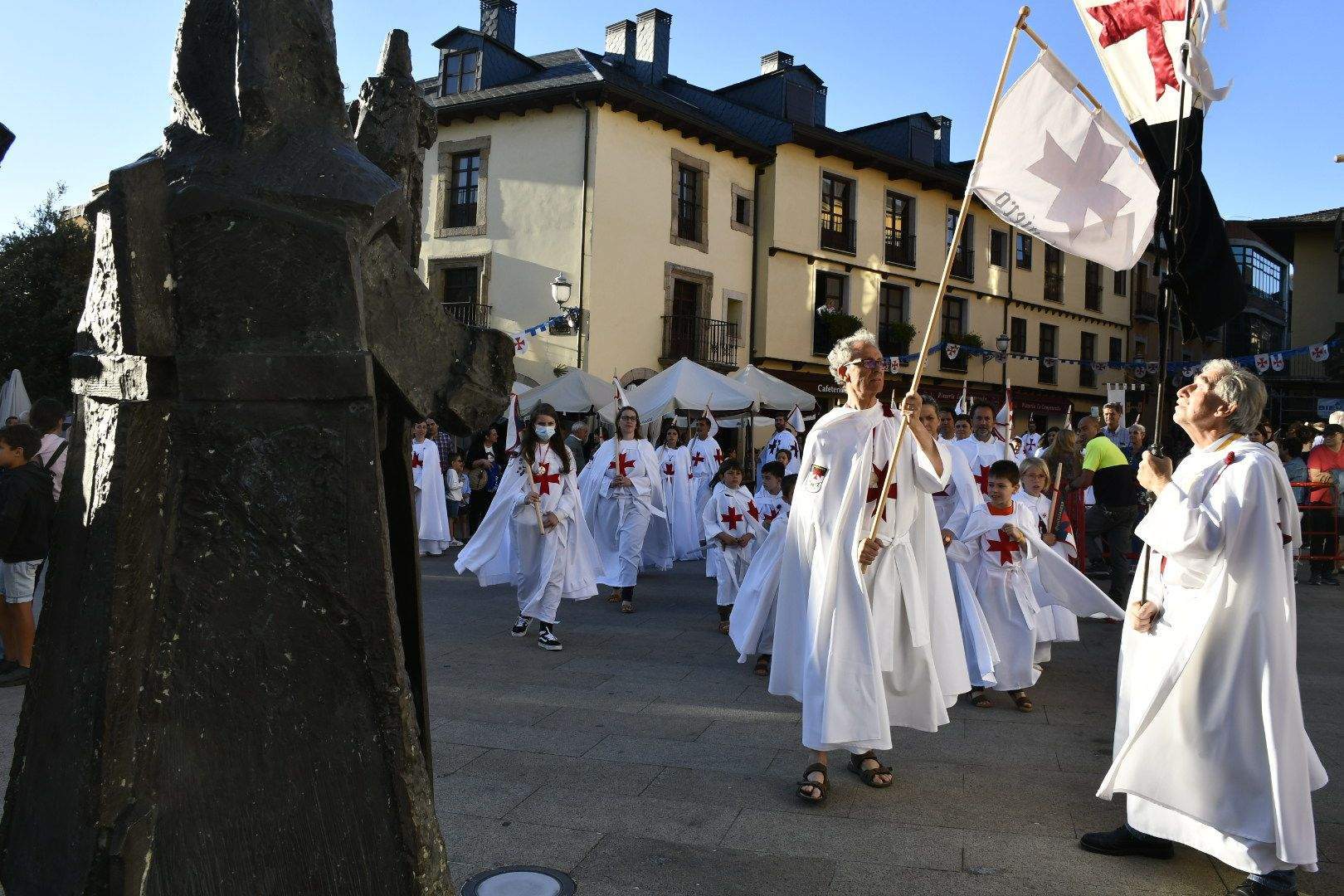 La ciudad de Ponferrada, concretamente la Plaza de la Encina en el corazón del Casco Antiguo, ha reunido a los más pequeños para cumplir uno de los 'ritos' iniciáticos de La Noche Templaria, para convertirse en escuderos de la Orden del Temple. Tras dos años de parón por la crisis sanitaria, la Noche Templaria de Ponferrada ha vuelto y además renovada, con nuevos espacios y actos que permitirán a bercianos y turistas disfrutar de esta cita medieval con la llegada del verano. El mismo maestre Guido de Garda ha acompañado a los escuderos desde el Paseo San Antonio hasta la plaza, donde la imposición de mano y el colgante con la orden del Temple hace que nuevos 'relevos' empiecen a sumarse a este colectivo promotor de una fiesta ya referente en la ciudad.