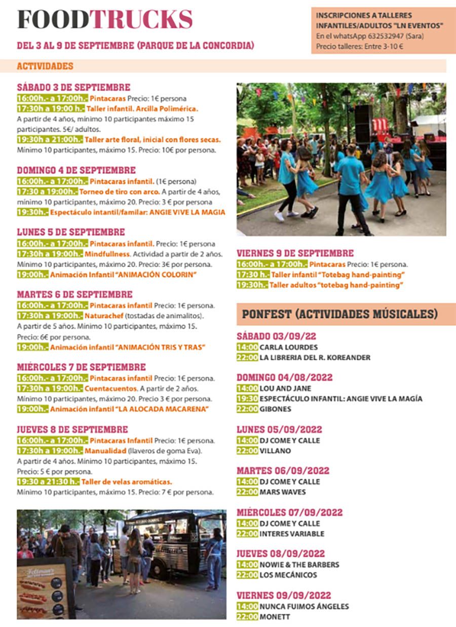 PROGRAMA ACTIVIDADES EN LAS FOODTRUCKS DEL 3 AL 9 DE SEPTIEMBRE (Parque de la Concordia)