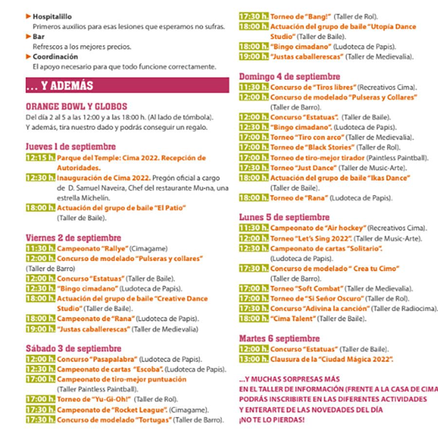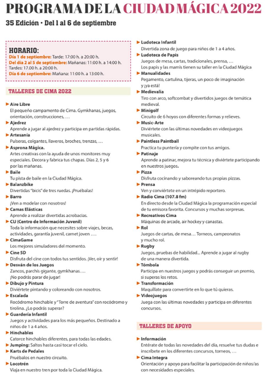 Por su parte, la Ciudad Mágica tendrá lugar del 1 al 6 de septiembre. Además, la concejala de Fiestas ha confirmado que ya se han cubierto las vacantes de voluntarios para la Ciudad Mágica, con lo que unos 400 jóvenes colaborarán en la organización de este evento.