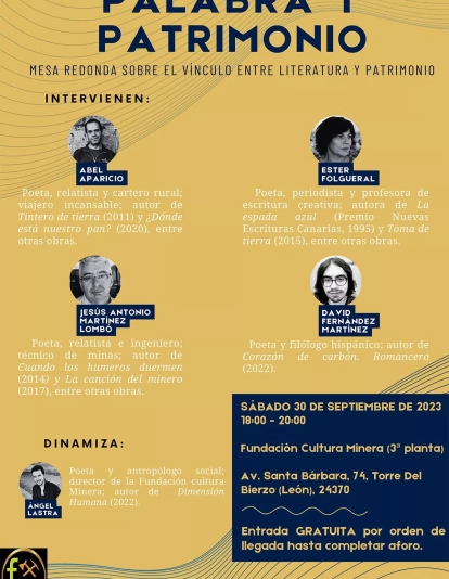 La Fundación Cultura Minera organiza dentro de su proyecto ‘Evento del mes’ la primera edición de esta mesa redonda sobre el vínculo entre literatura y patrimonio
