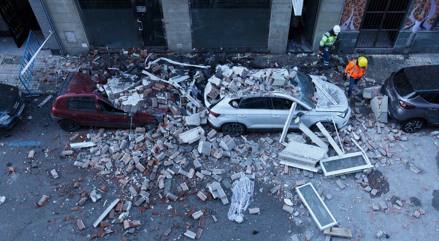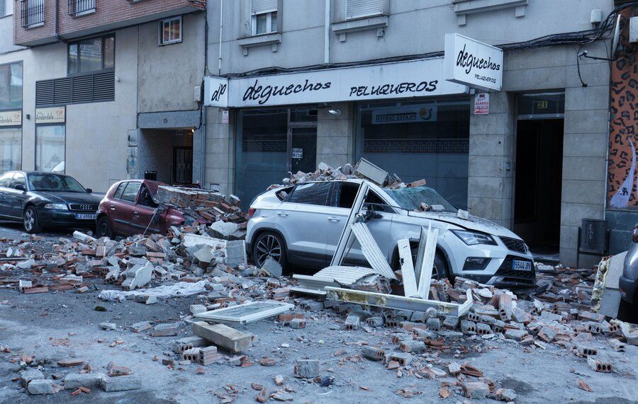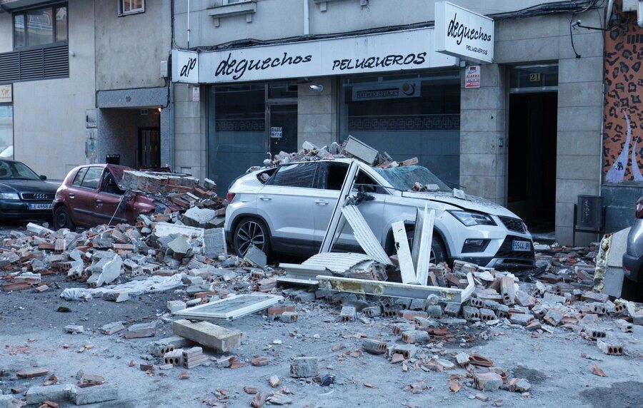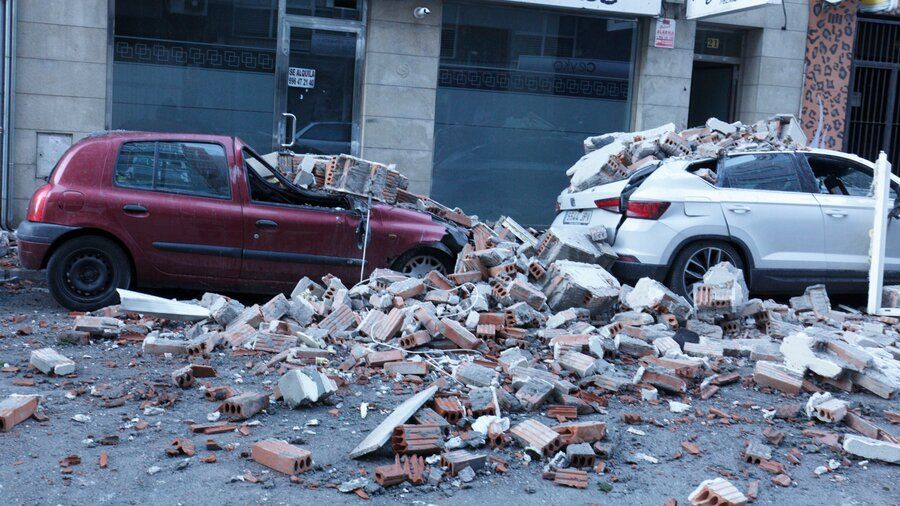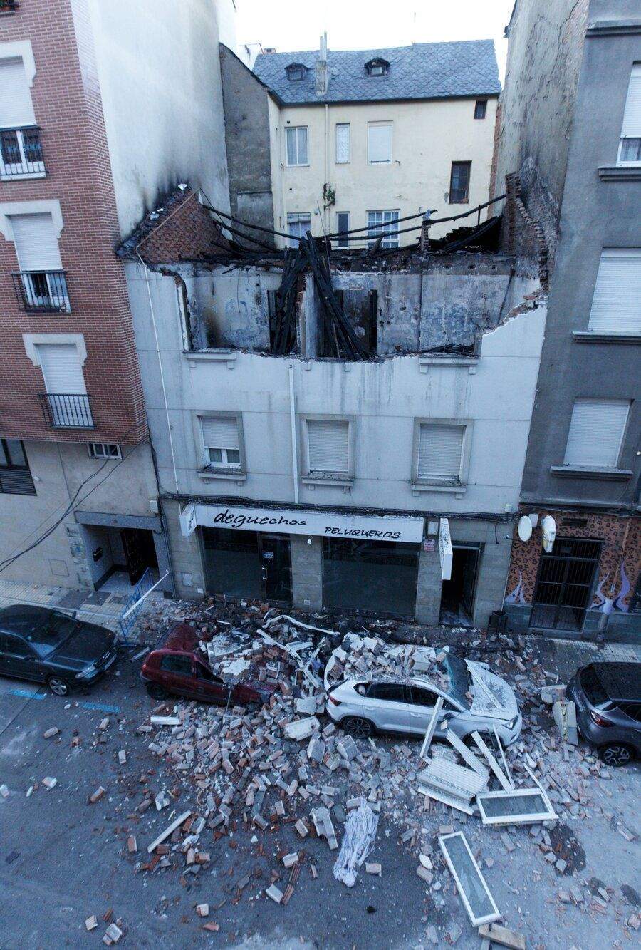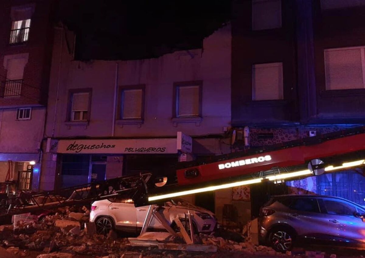 Aunque finalmente no hubo que lamentar daños personales, el incidente también dejó en estado de siniestro total dos vehículos estacionados frente al inmueble, que resultaron afectados por la caída de cascotes. Otros dos coches resultaron afectados con daños leves por el mismo motivo. Hasta el lugar de los hechos acudieron cinco efectivos de los Bomberos, con una autobomba y el camión autoescala.