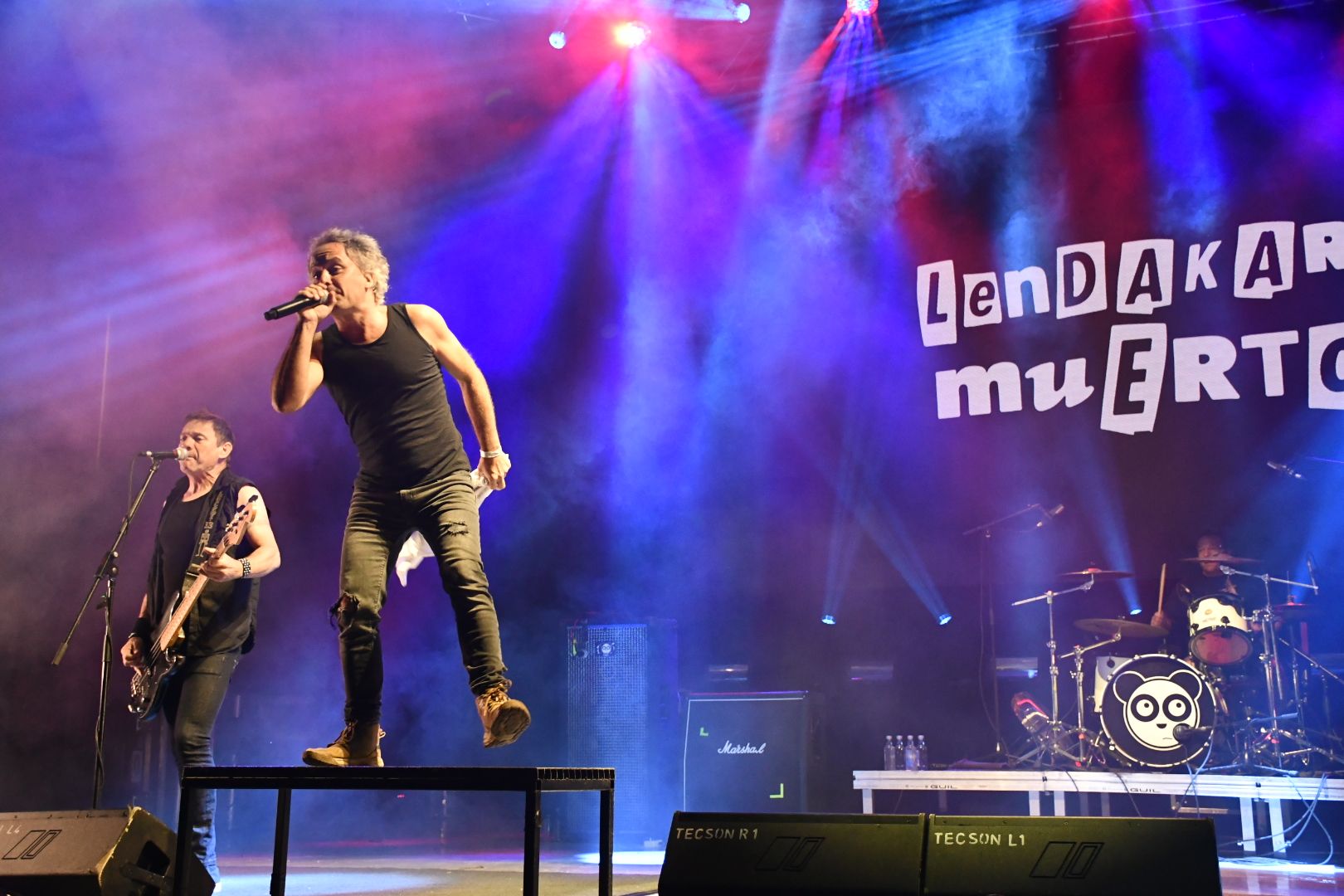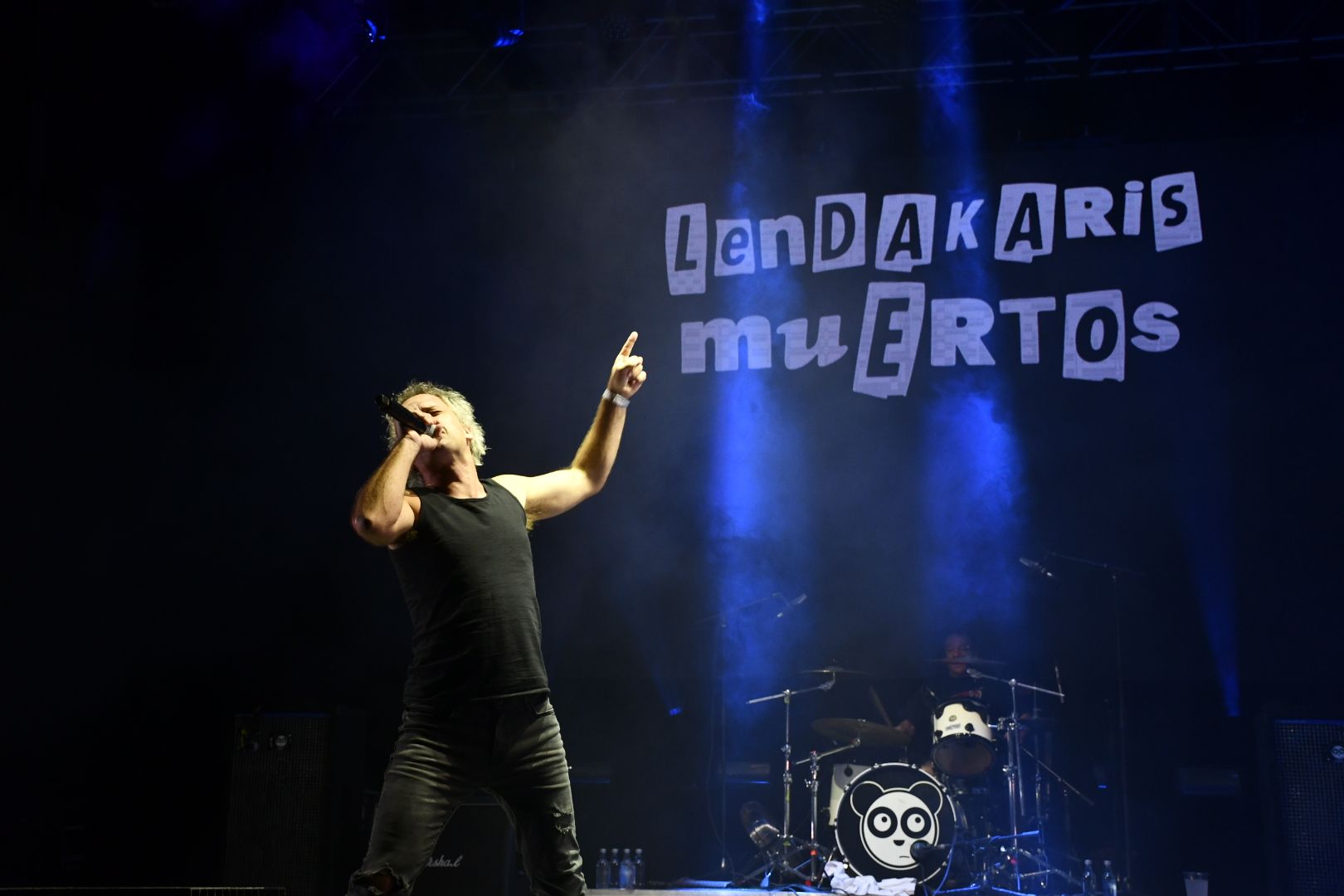 Lendakaris Muertos los navarros desplegaron su punk ortodoxo, con sus letras que mezclan humor y crítica para tratar temas sociales y políticos. El nombre de la banda está inspirado en el grupo estadounidense de hardcore punk Dead Kennedys, cuyo sencillo "Too drunk to fuck" ha sido versionado por la banda en la canción "Demasiado ciego para follar", del disco titulado Lendakaris Muertos. El grupo nace a principios de 2004 formado por los hermanos Aitor y Asier en la voz y la guitarra respectivamente, Txema en el bajo e Iñakí en la batería.