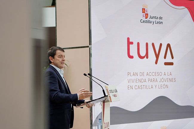 El presidente de la Junta, Alfonso Fernández Mañueco, destacó este viernes en Valladolid durante la presentación del Plan de acceso a la vivienda para jóvenes en Castilla y León, con el nombre Tuya, que el objetivo es ayudar a la emancipación de este colectivo y que puedan “construir” su futuro en la Comunidad. Calificó el plan de “ambicioso”, que contará con una inversión de 400 millones de euros y que prevé beneficiar a unos 40.000 jóvenes hasta el año 2026. “Son medidas completas como la ayuda a la compra y al alquiler, el acceso a la hipoteca, las bonificaciones fiscales y contar con parque público de vivienda, que buscan facilitar el acceso de los jóvenes a una casa. Es una prioridad del Gobierno de Castilla y León para que puedan desarrollar su proyecto de vida en la Comunidad, dando oportunidades y facilitando el acceso a la vivienda, y también fijar población en el medio rural”, aseveró.