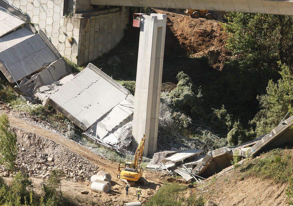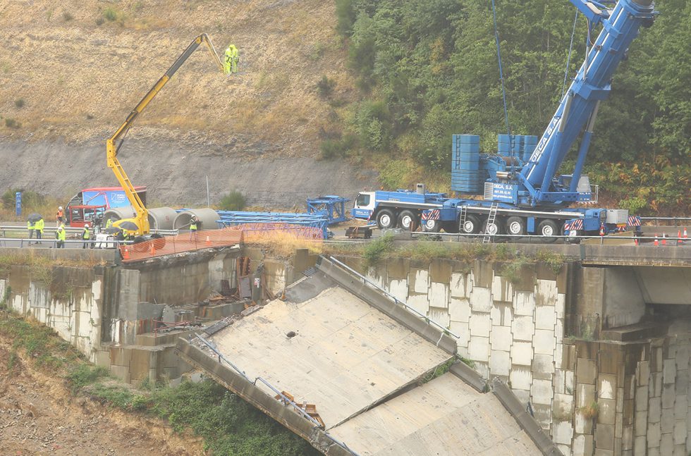Tras el análisis de varios procedimientos de desmontaje, Mitma se ha decantado finalmente por la demolición con robot, procedimiento análogo al ya empleado para el desmontaje del vano 2 del viaducto de la calzada sentido A Coruña (viaducto colapsado).