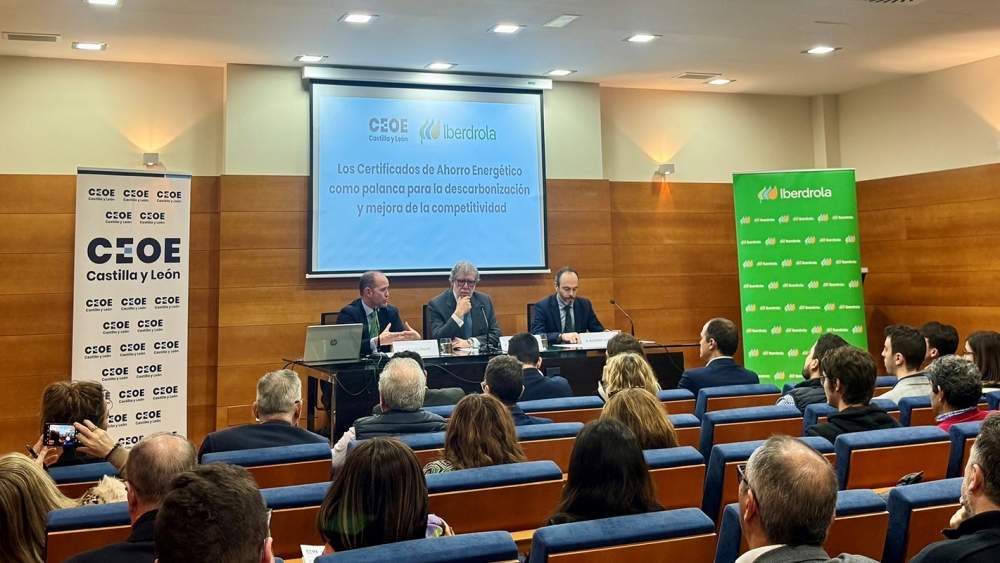 Medio centenar de empresarios de Castilla y León han participado este viernes en el encuentro organizado por CEOE Castilla y León, con la colaboración de Iberdrola, que ha dado a conocer las ventajas de los Certificados de Ahorro Energético (CAEs) como palanca para la descarbonización y mejora de la competitividad de las empresas.