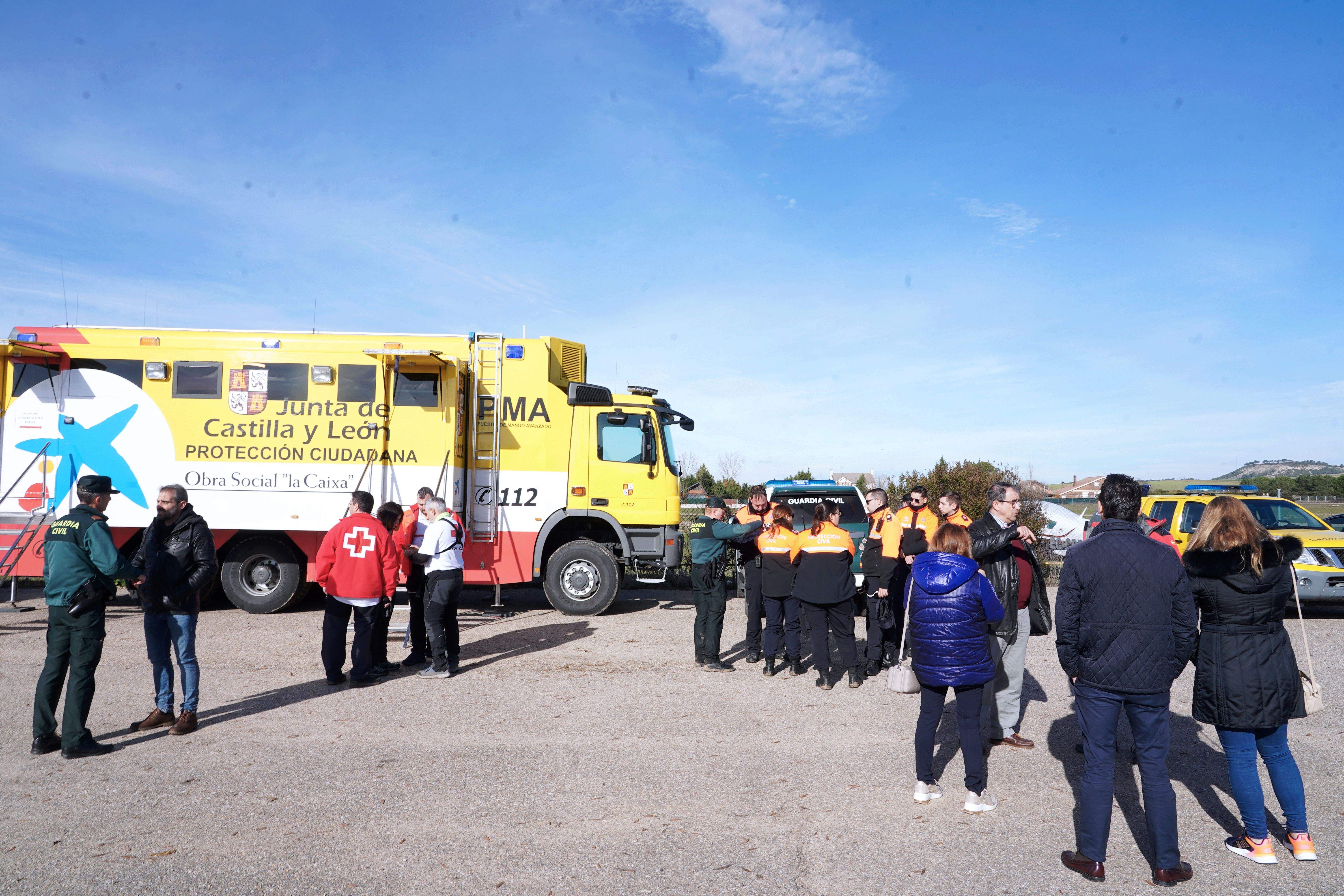 Durante la tarde y la noche del sábado, participaron en la búsqueda, además de los agentes de la Guardia Civil, voluntarios de Protección Civil, personal de Medio Ambiente y un helicóptero del SAR equipado con sistemas de visión nocturna, en una zona comprendida entre las localidades de Tordesillas, Velilla, Velliza, San Miguel del Pino, Matilla de los Caños, Geria y Villamarciel. La Agencia de Protección Civil y Emergencias activó también personal del Grupo de Intervención Psicológica en Desastres y Emergencias (GIPDE) para atender a los allegados de ambas personas desaparecidas.
