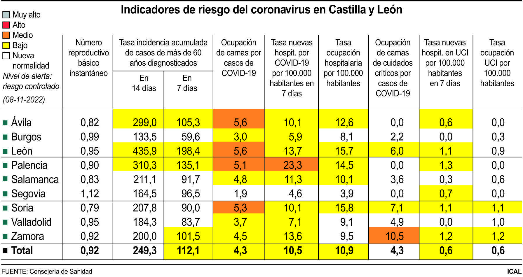Indicadores de riesgo del coronavirus en Castilla y León, a este 8 de noviembre de 2022