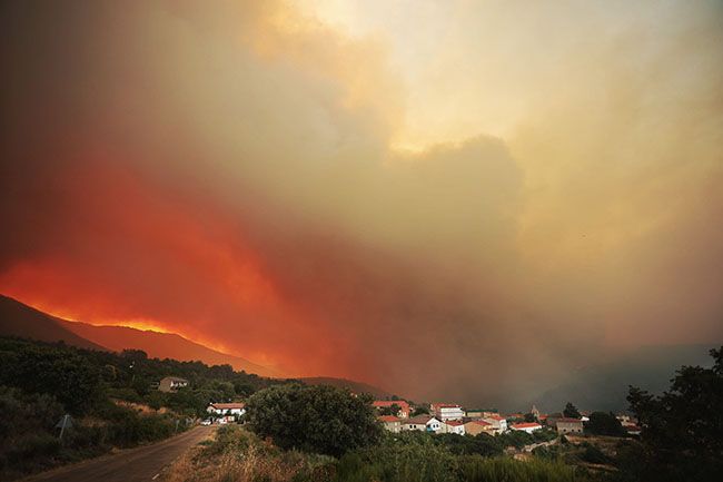 Incendio forestal en el Parque Natural de las Batuecas-Sierra de Francia, en el termino municipal de Monsagro(Salamanca)El origen de estos incendios ha sido la tormenta seca y los rayos que, sumados a las altas temperaturas, han provocado otros focos en los municipios salmantinos de Saelices El Chico, Puerto Seguro y Sobradillo.
