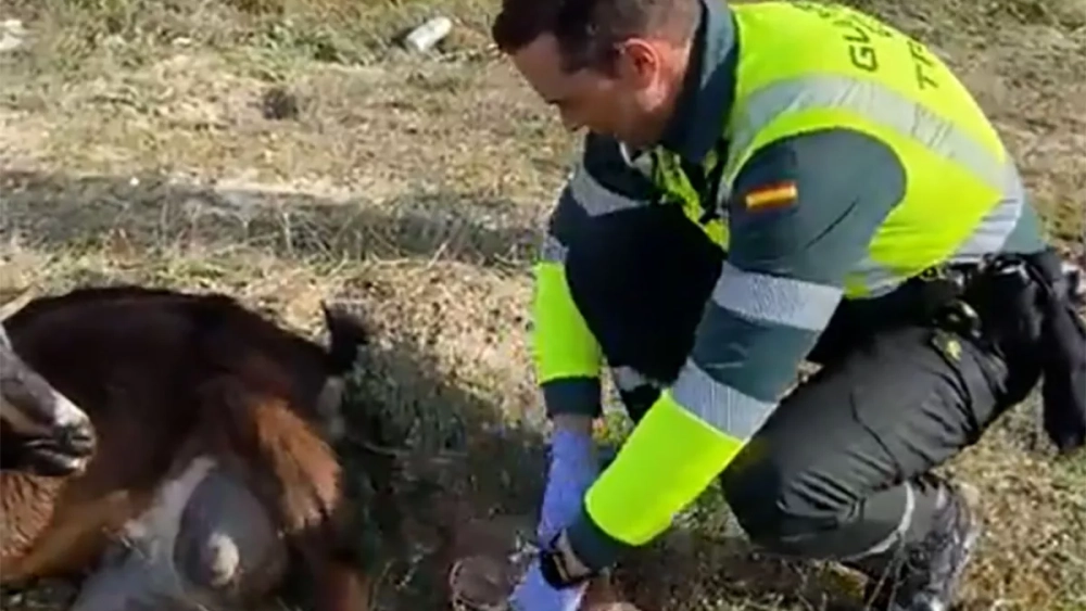 La peculiar intervención tuvo lugar en una carretera de la provincia de Valladolid, donde un guardia civil asistió a la cabra en el parto. El suceso fue grabado y compartido en las redes sociales del cuerpo de seguridad y también por los allí presentes, personas de a pie que alabaron la labor de guardia que logró sacar con vida a dos cabritillos.