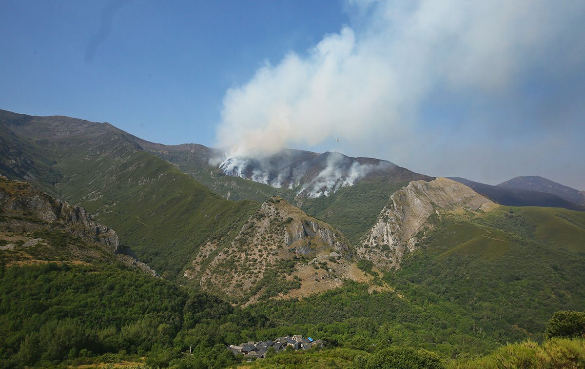 El incendio de Montes de Valdueza amenaza la localidad de Peñalba (León)