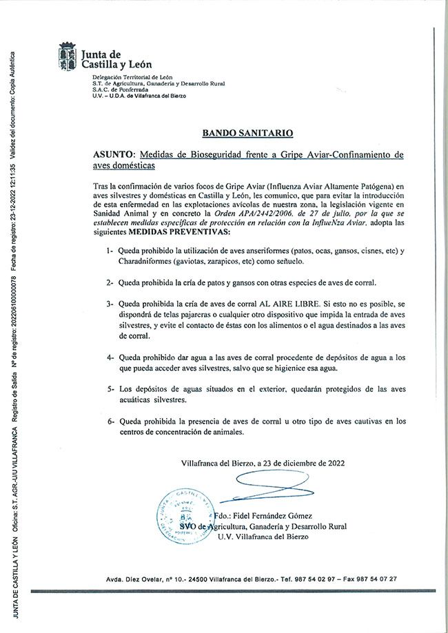 De este modo, "para evitar la introducción de esta enfermedad en las explotaciones avícolas de nuestra zona, la legislación vigente en Sanidad Animal y en concreto la Orden APA/2442/2006, de 27 de julio, por la que se establecen medidas específicas de protección con la InflueNza Aviar", apunta la Junta de Castilla y León.