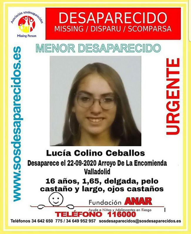 La joven, de nombre Lucía, mide 1,65 metros, es delgada, con el pelo castaño y largo. Desde el CNP se solicita la colaboración ciudadana y se recuerda que cualquier persona que tenga alguna pista puede llamar a los teléfonos 091, 062 o 112.