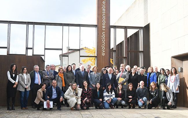 Acto seguido, se dirigió a los patronos de la Fundación a quienes saludó uno a uno para posteriormente entrar en las instalaciones y firmar en el Libro de Honor. Su Majestad la reina abrió la sesión del Patronato, que se celebró bajo su presidencia, y posteriormente, tuvo lugar la foto de familia del grupo de patronos en el exterior de la sede.