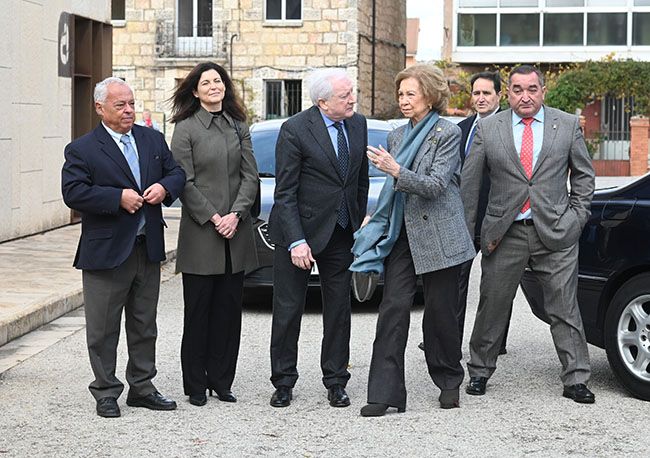 Doña Sofía llegó a la sede de la institución a las 12,45 horas, con un ligero retraso sobre la hora prevista debido a que su viaje desde Madrid no pudo realizarse por el aire en helicóptero, como es habitual, debido a las adversas condiciones climatológicas y tuvo que desplazarse en vehículo oficial.