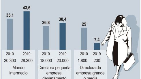 Así, en relación a los mandos intermedios, las mujeres han pasado de suponer un 35,1 por ciento de estos cargos en Castilla y León en 2010 a ocupar el 43,6 por ciento de los mismos en 2019, con 28.200 mujeres. Una subida del 8,5 por ciento en la última década que es incluso mayor, en términos porcentuales, que el aumento sostenido que también se ha producido a nivel nacional.