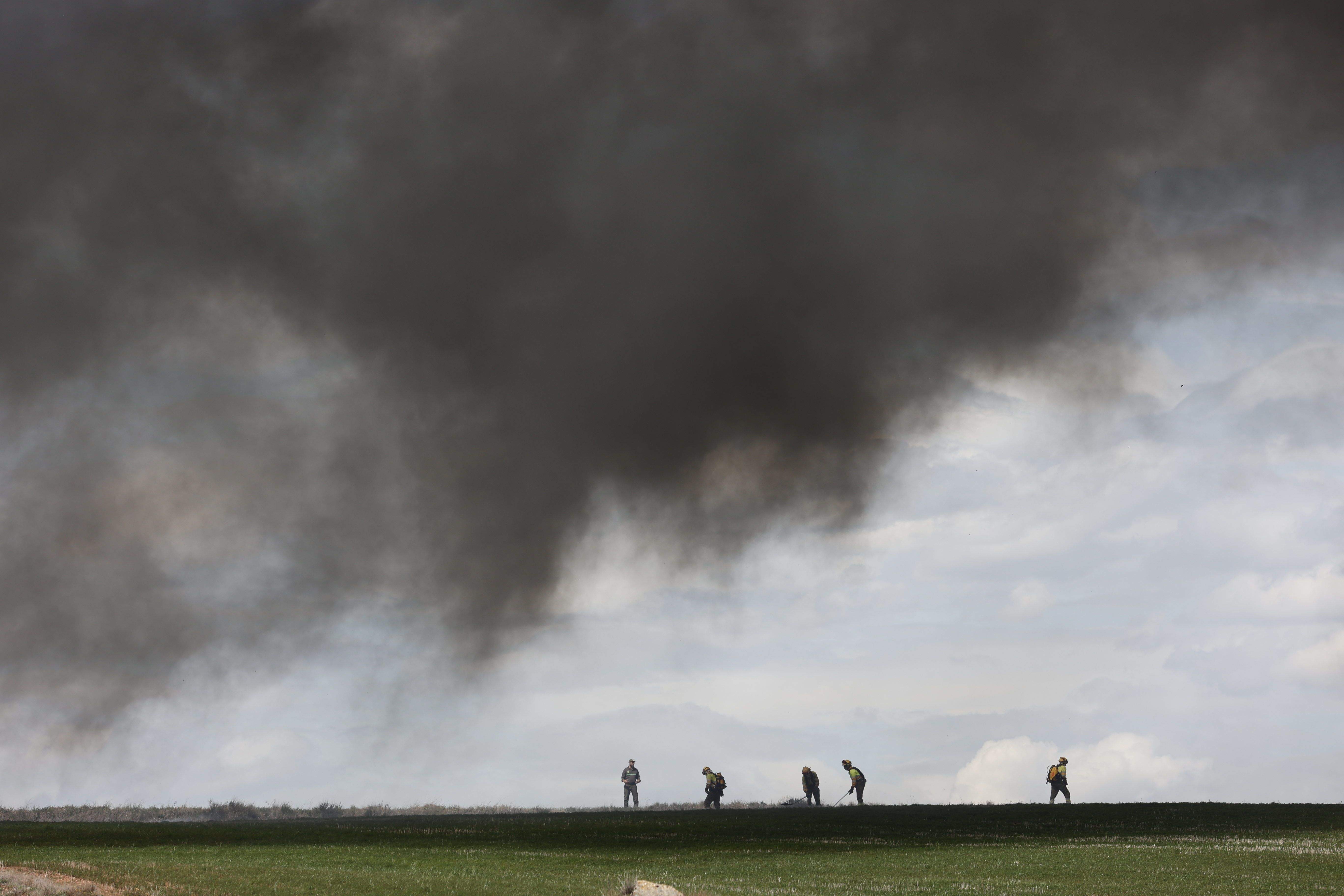 Junto con los bomberos de Soria también participaron un camión cisterna de la Diputación, una nodriza de Medio Ambiente y un tractor con cuba de agua, y acudió al lugar de forma preventiva una dotación de Sacyl para atender a los efectivos en el caso de que fuera necesario.