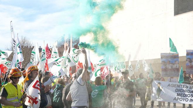 Los trabajadores lanzaron consignas contra el consejero con pancartas en las que se podía leer: “Agentes forestales en lucha” o “Agentes Medioambientales. Dignidad, Seguridad, Medios de Defensa, Apoyo Institucional”. La periodista Franca Velasco se encargó de leer un manifiesto, en el que el colectivo destaca que los empleados públicos “no deben soportar ante los ciudadanos la responsabilidad” que provoca la “ineficacia” de los cargos políticos.