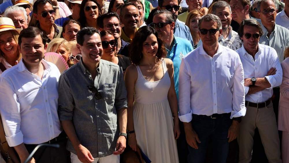 El acto en la plaza de España comenzó con las palabras del alcalde de Madrid, José Luis Martínez Almeida, continuó con la intervención de la presidenta de la Comunidad de Madrid, Isabel Díaz Ayuso, y finalizó con Alberto Núñez Feijoó, que destacó que no quería una concentración en la que las siglas del partido fueran protagonistas porque “esto va más allá de un partido y de unas siglas, tenemos que estar por encima y defender la democracia”.