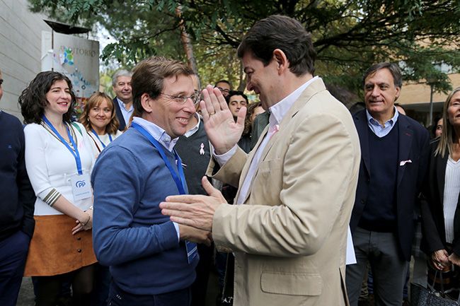 El presidente del PP en Castilla y León, Alfonso Fernández Mañueco, junto al alcalde de Madrid, José Luis Martínez-Almeida