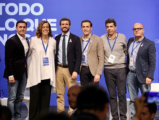 El presidente nacional del PP, Pablo Casado, En la XXV Intermunicipal del Partido Popular junto a los participantes de la mesa 'Las diputaciones elemento vertebrador de la España rural', los presidentes de las instituciones de Palencia y Valladolid, Ángeles Armisén y Conrado Íscar, y los de Alicante y Orense.