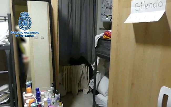 300w" alt="" width="650" height="406">Las víctimas, que eran captadas en Paraguay entre las mujeres más jóvenes y vulnerables de las familias de los propios proxenetas, eran obligadas a estar disponibles las 24 horas y dormían hacinadas en literas en el cuarto de calderas. Además, estaban vigiladas a través de una red de cámaras y micrófonos instalados en el hostal, no podían realizar ninguna actividad e incluso tenían prohibido cocinar.