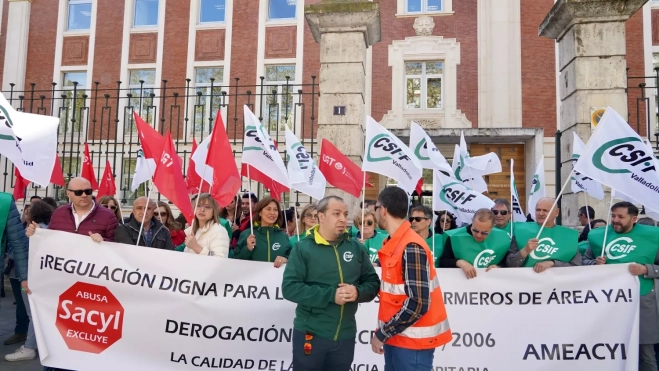 La Agrupación de Profesionales de Área de Castilla y León (AMEACyL), que representa tanto a médicos como enfermeras de área de Atención Primaria de Sacyl, se concentró este jueves ante la Consejería de Sanidad para denunciar la precariedad, pasividad e inacción a la que ”somete” la Gerencia Regional de Salud a este personal, que desarrolla su trabajo en los centros de salud y puntos de atención continuada de la Comunidad.