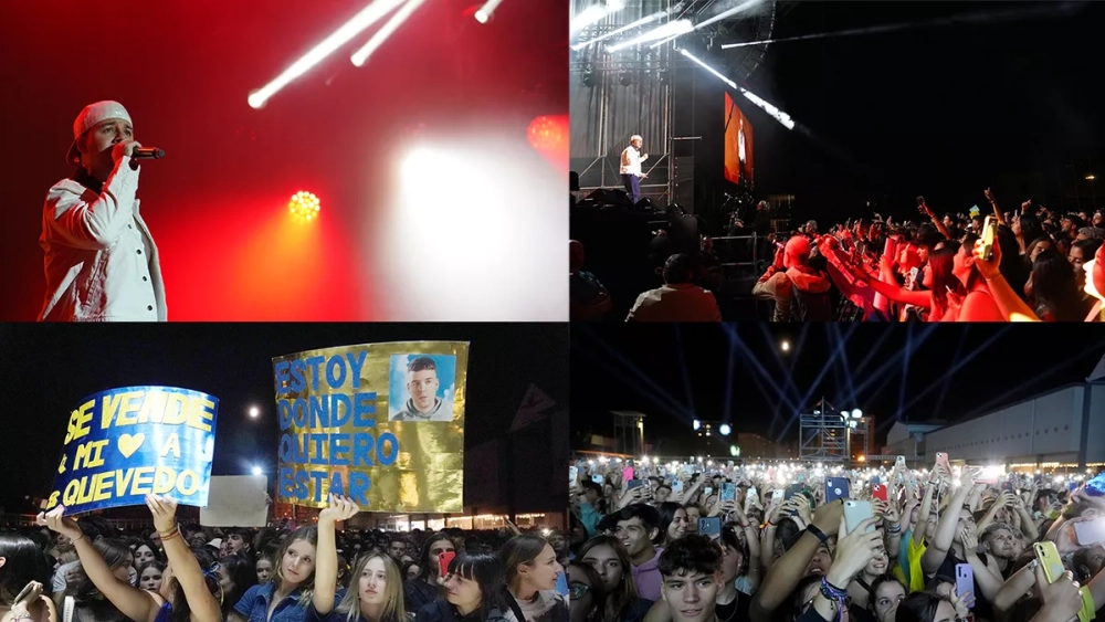 Quevedo ofreció esta noche en Valladolid su único concierto en Castilla y León dentro de la Gira 2023: DQE TOUR, ante unas 11.000 personas que abarrotaron el recinto de la Feria de Muestras para cantar y bailar al ritmo de las canciones de género urbano, trap y reguetón que han lanzado al estrellato a este joven artista: ‘Quevedo: Bzrp Music Sessions, Vol. 52’, ‘Playa del Inglés’, ‘Columbia’ o ‘El Tonto’.