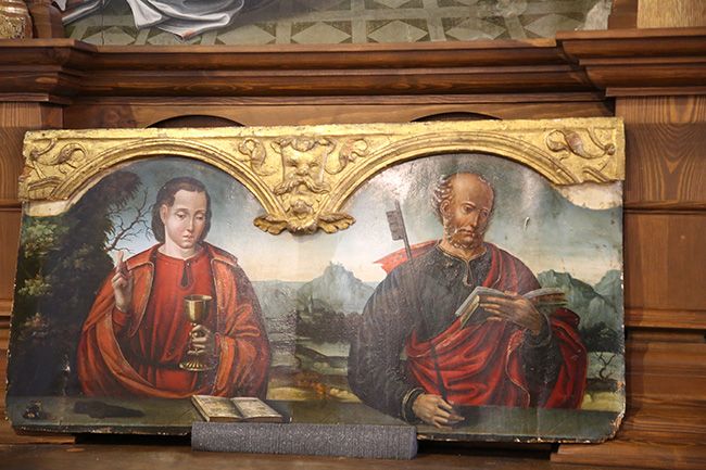 Las tablas se encontraban en la predela, la parte baja del retablo realizado en 1540, con el posible mecenazgo del Conde de Benavente, cuyo escudo aparece en el remate del retablo, “teniendo en cuenta ese escudo que se conserva aquí junto con otro escudo, que aparece un báculo y que posiblemente sea un escudo episcopal o un escudo abacial”, según precisó el delegado episcopal para el Patrimonio de la diócesis de Zamora, José Ángel Rivera.