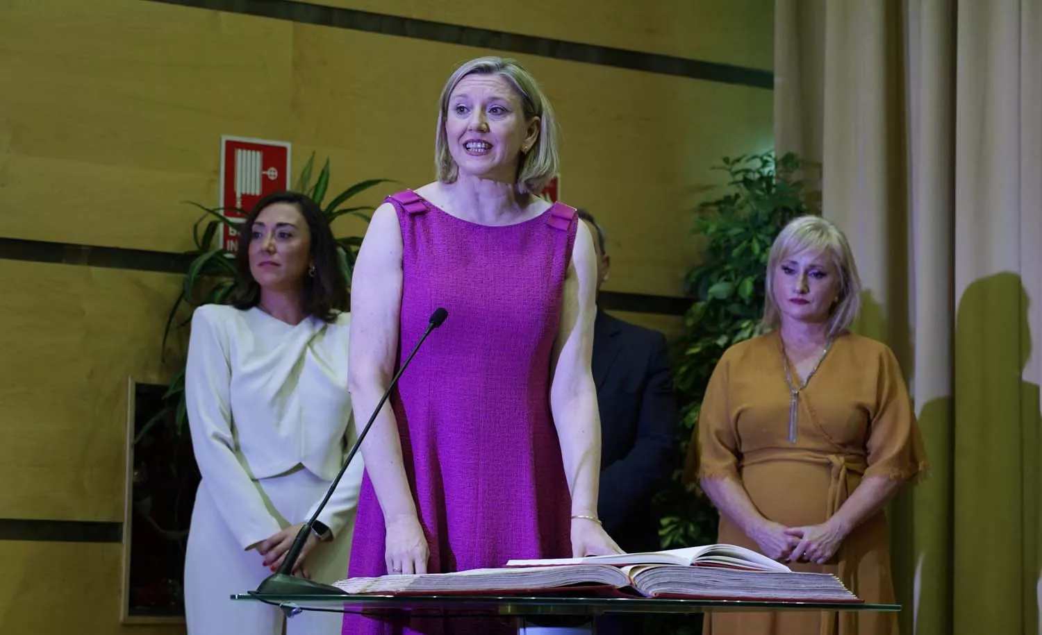 A ellos les encomendó las tareas de “llevar bien alta la bandera de la igualdad”, así como crear empleo, proteger a los trabajadores, potenciar el Diálogo Social “como seña fundamental de la Comunidad Autónoma”, impulsar la modernización del campo y la industria agroalimentaria, completar la digitalización, potenciar las infraestructuras y “seguir siendo pioneros en el importante sector del transporte y la movilidad”.