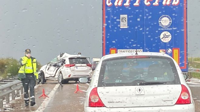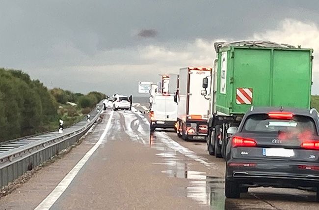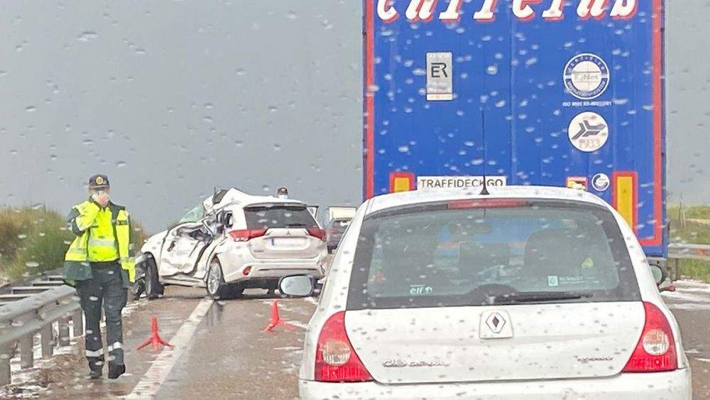 Tres personas resultaron heridas en la tarde del pasado miércoles tras registrarse una colisión entre dos turismos y un camión a causa de una fuerte tormenta de granizo en el kilómetro 234 de la A-6, en Villalpando (Zamora), en sentido La Coruña, según informaron fuentes de la sala del Centro de Emergencias 1-1-2 Castilla y León.