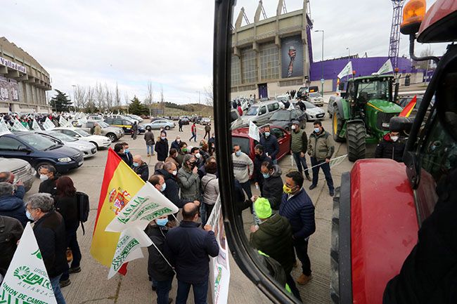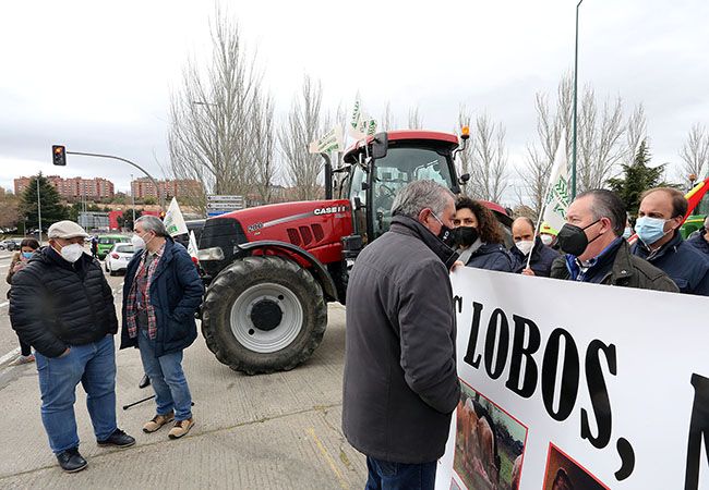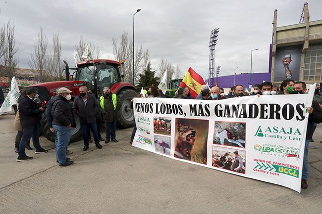 Los líderes de opas, Donaciano Dujo (Asaja), Jesús Manuel González Palacín (UCCL); Aurelio Goznález (UPA) y Aurelio Pérez (COAG) cargaron contra ministra y su propuesta, porque pone en peligro la ganadería extensiva en Castilla y León, como medio de vida para 35.000 familias. Los dirigentes agrarios denunciaron la sobrepoblación del lobo, con más ejemplares en Zamora que en toda Francia, y advirtieron que acabar con la actividad ganadera generará más despoblación y un impacto sobre el medio ambiente, ya que habrá más maleza en las tierras y se producirán más incendios. Asimismo, no entendieron que la decisión sobre el lobo en Castilla y León y la cornisa cantábrica se tome con votos de autonomías como Canarias o la Ciudad Autónoma de Melilla. Parlamentarios de PP y VOX acudieron al inicio de la protesta en el estadio de fútbol.