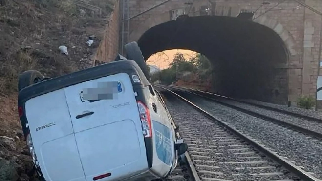 El vuelco de una furgoneta al borde de las vías del tren en el término municipal de Arcos del Jalón (Soria), con el resultado de un herido de carácter leve, afectó a la red ferroviaria lo que motivó el desvío de transporte de mercancías en la Madrid-Zaragoza hasta la retirada del vehículo.