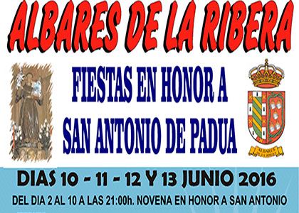 Ya desde la mañana Albares de la Ribera contará con actos festivos. El pasacalles dará el pistoletazo de salida a las 10.30 horas. Tras ello, habrá una misa solemne y procesión en honor a San Antonio y un torneo de subasta. El ritmo lo pondrá el Trío Florida a las 20.30 horas con un baile de tarde. A medianoche, el mismo grupo ofrecerá la verbena.