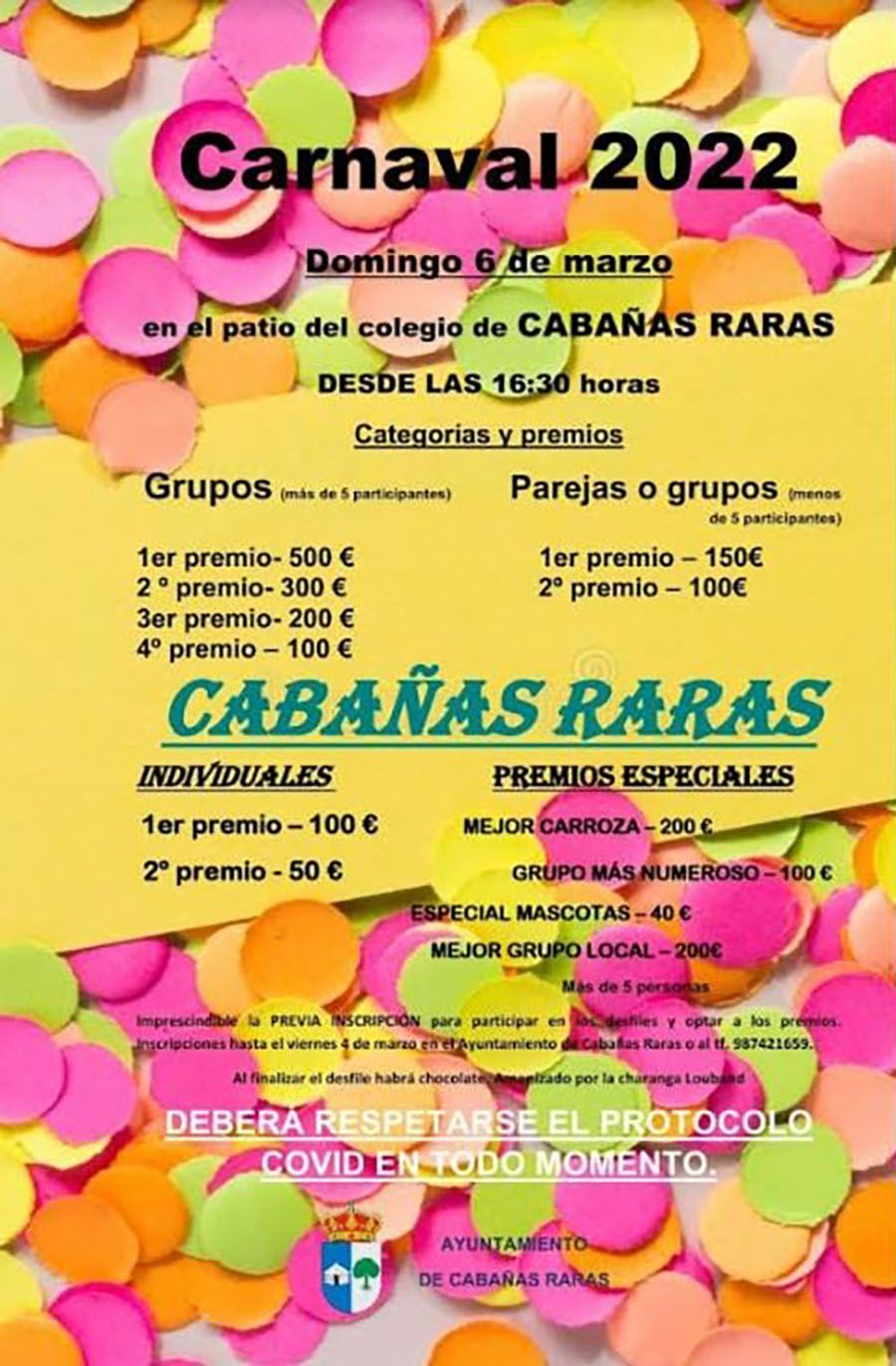 El Carnaval 2022 de Cabañas Raras saldrá a las calles el 6 de marzo. Pulsa aquí (CLIC) para acceder a toda la información.