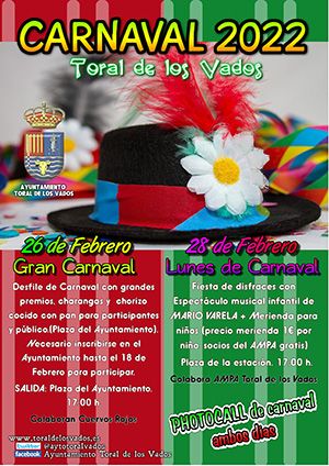 Villafranca del Bierzo celebra el domingo 27 un desfile carnavalero y su tradicional Sábado de Piñata el día 5 de marzo. Pulsa aquí (CLIC) para acceder a toda la informaciónToral de los Vados ‘desempolva’ sus disfraces para celebrar el Carnaval 2022. Haz CLIC para conocer todos los datos.