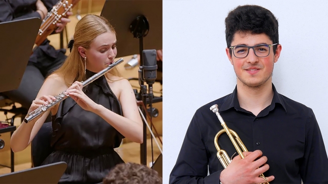 Tras finalizar sus estudios en el centro ponferradino el pasado mes de junio, el Conservatorio Profesional de Música “Cristóbal Halffter” de Ponferrada, propuso a los alumnos Laura Cañas Huerga y Patricio Martín Fernández, de las especialidades de Flauta Travesera y Trompeta, respectivamente, como candidatos a obtener el Premio Extraordinario de las Enseñanzas Artísticas de Castilla y León. Estas pruebas, celebradas los días 23 y 24 de septiembre de 2024, consistieron en un examen de Análisis e Historia de la Música y un Recital, de carácter público, en el que interpretaron tres obras de diferentes estilos.