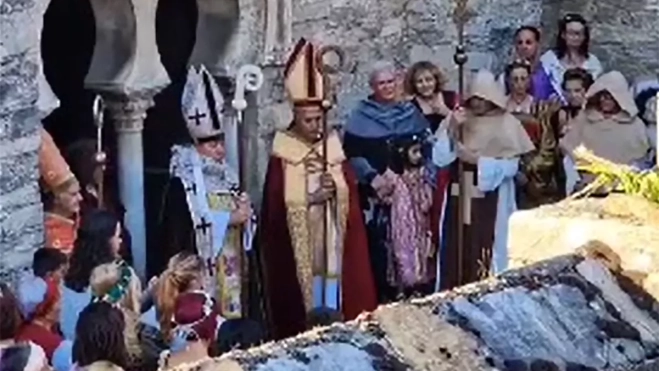 Este sábado, 27 de julio, casi 200 personas, ataviadas para la ocasión con vestimentas de la época, fueron testigos de la recreación del "Acto de entrega de la Cruz", conocida como Cruz de Peñalba. Fue entregada por el rey Ramiro II a la comunidad eclesiástica de Santiago de Peñalba y a las altas jerarquías eclesiásticas del Reino que les acompañan en el siglo X.