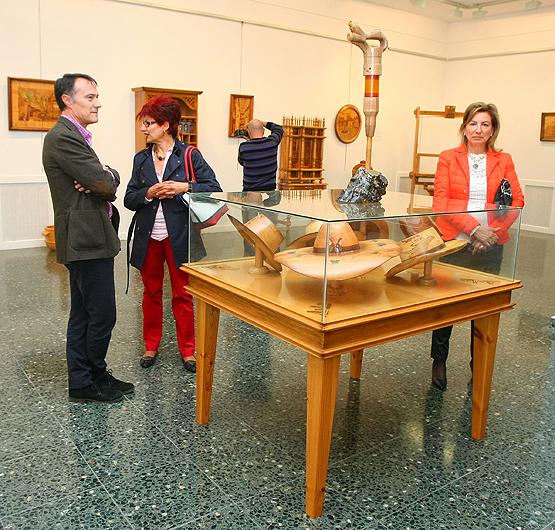 La concejala de Cultura del Ayuntamiento de Ponferrada, María Antonia Gancedo, junto al autor de la exposición 'Senderos', José Peréz Puerto, durante su inauguraciónLa Casa de la Cultura de Ponferrada acoge desde este viernes la exposición 'Senderos', en la que el artesano José Pérez Puerto hace un recorrido a sus 37 años dedicados al oficio de carpintero y ebanista a través de más de un centenar de piezas, cuadros y esculturas. “Es el camino que me ha llevado hasta el día de hoy, tras 37 años en el oficio desde que empecé y los últimos 14 dedicados a la enseñanza para que no se pierda el oficio tradicional”, apuntó Pérez Puerto.