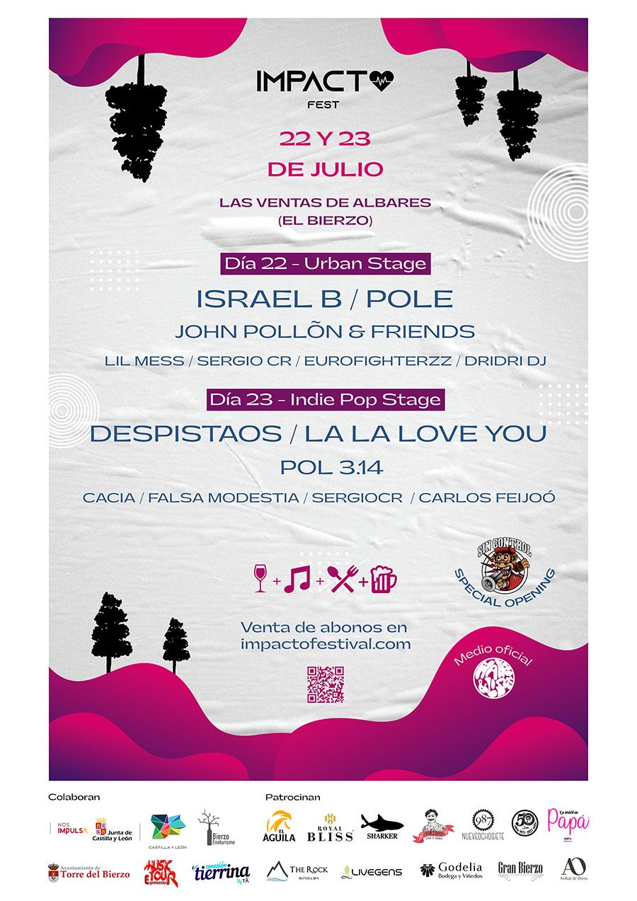 El festival berciano, Impacto Fest, ha compartido el cartel de actuaciones por días, donde el viernes 22 de julio estará caracterizado por el estilo urban y el sábado 23 por la música indie-pop. De este modo, el Impacto Fest 2022 ya cuenta con cartel y entradas por días. Así, el Urban Stage está programado para el viernes del fin de semana veraniego, donde Israel B, Pole y John Pollõn serán los cabeza de cartel, pero no los únicos en subirse al escenario.